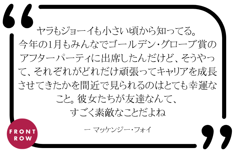 子役出身として業界ではキャリアが長いマッケンジーだけに、仲の良い友達グループには、米Time誌の“最も影響力を持つティーン2016”に選ばれたヤラ・シャヒディや、エミー賞ノミネート女優のジョーイ・キング、東京公演が完売したサブリナ・カーペンターなど、豪華な面々が!