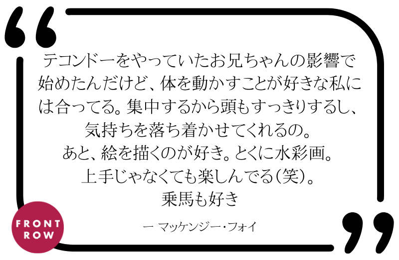 主演映画『ブラック・ビューティー』のアシュリー・エイビス監督も、「何よりまず、マッケンジーは良いハートを持っている。この業界で成功するためには、それは最も重要なことの一つ。4歳から業界にいたとは思えない素直さと謙虚さを持っている」とフロントロウ編集部に話した。