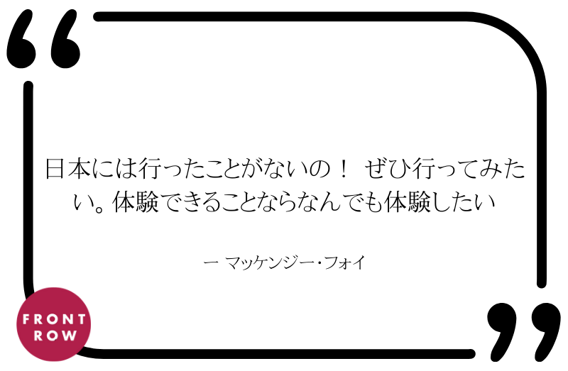日本好きな友人がいたり、日本に住んでいた友人がいたりするマッケンジーだけれど、本人はまだ来日経験は無し。ぜひ今後の映画のプレミアなどでの来日を待ちたい。