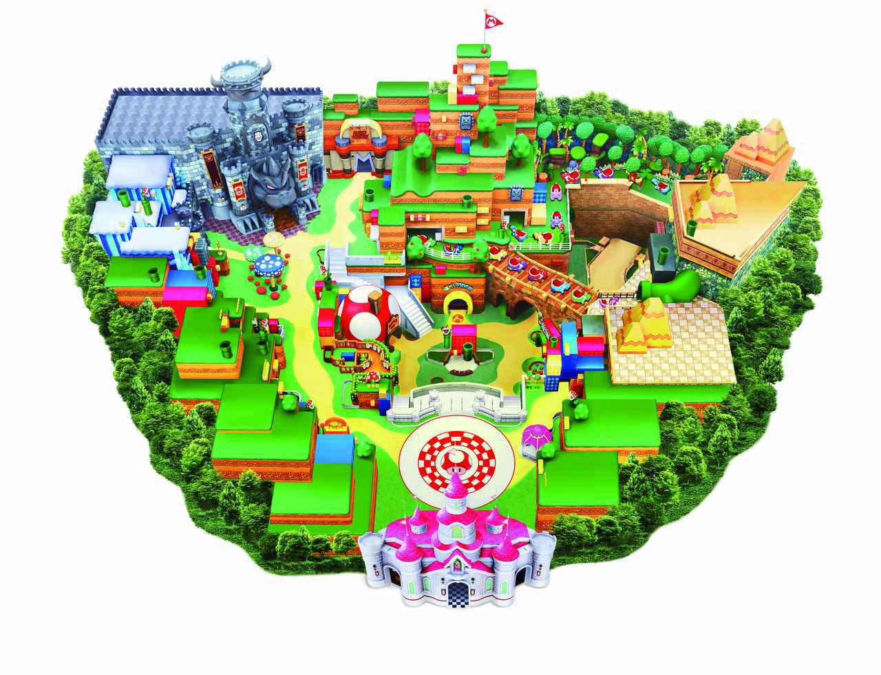 パーク初の多層式エリアである「スーパー・ニンテンドー・ワールド」では、「マリオカート ~クッ パの挑戦状~」、「ヨッシー・アドベンチャー」のライド・アトラクションをはじめ、数多くのアクティビティや ショッピング、飲食などを楽しむことができる。今回初公開となるエリアマップでは、ピーチ城やクッパ城、マウント・ビーンポールなどのシンボルに加え、ショップ、レストランの詳細など、グランドオープンに向けて、より一層期待が高まる情報がお披露目された。