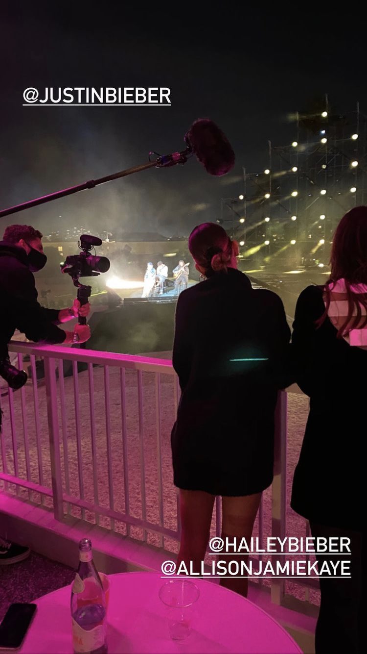 ジャスティンを見守る妻ヘイリー・ビーバーのうしろ姿。
