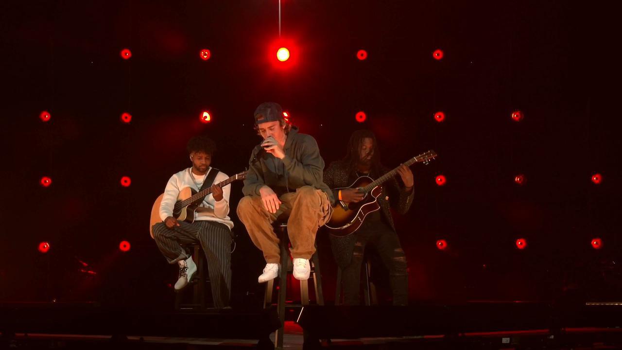 ファンの熱気が最高潮に達するなか、待ちに待ったコンサートがスタート! 1曲目は、『Changes』の一番最初に収録されている楽曲でもある「All Around Me(オール・アラウンド・ミー)」。続く「Sorry(ソーリー)」でキレッキレのダンスを披露すると、人気ラッパーのトラヴィス・スコットとコラボした「Second Emotion(セカンド・エモーション)」、かつて一緒にツアーを一緒に回ったことがあるラッパーのポスト・マローンをフィーチャリングに迎えた「Forever(フォーエヴァー)」を熱唱。
