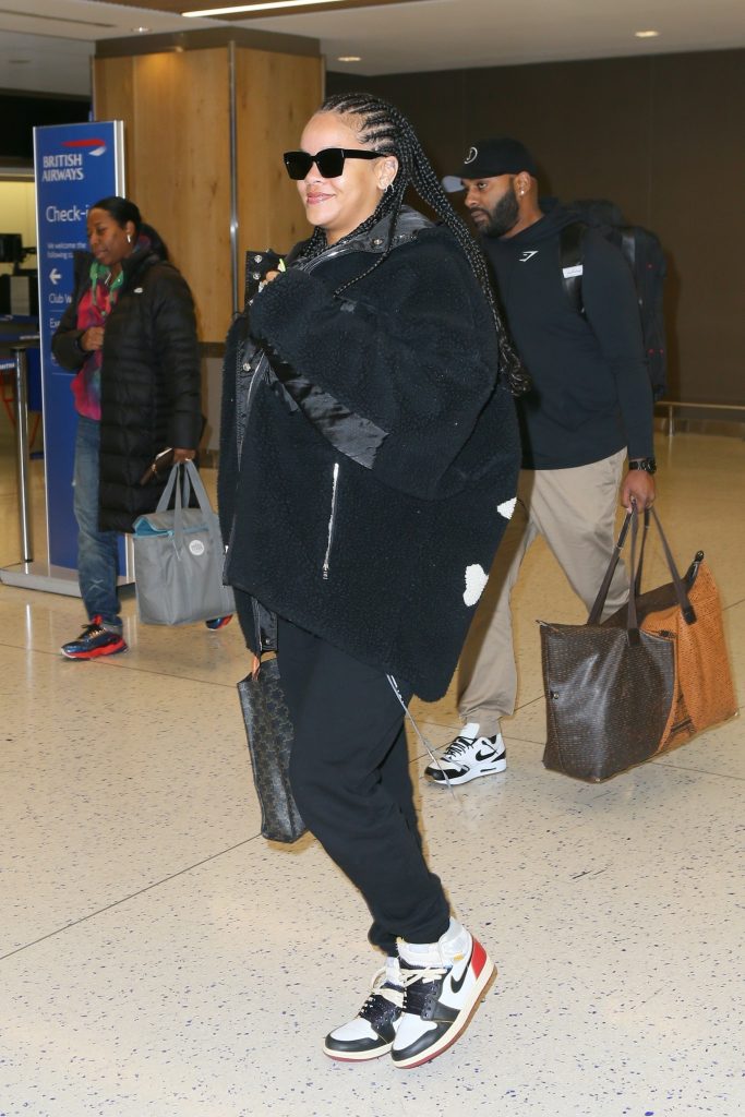 シンガーでありデザイナーとしても活躍するリアーナは、「ユニオン × ナイキ エアジョーダン1 レトロ ハイ」のブラックを愛用。全身ブラックのアイテムですっきりとまとめ、スニーカーを際立たせて。ジャケットはTimberland x Mastermind(ティンバーランド × マスターマインド)のコラボアイテム、パンツはVetements(ヴェトモン)のもの。