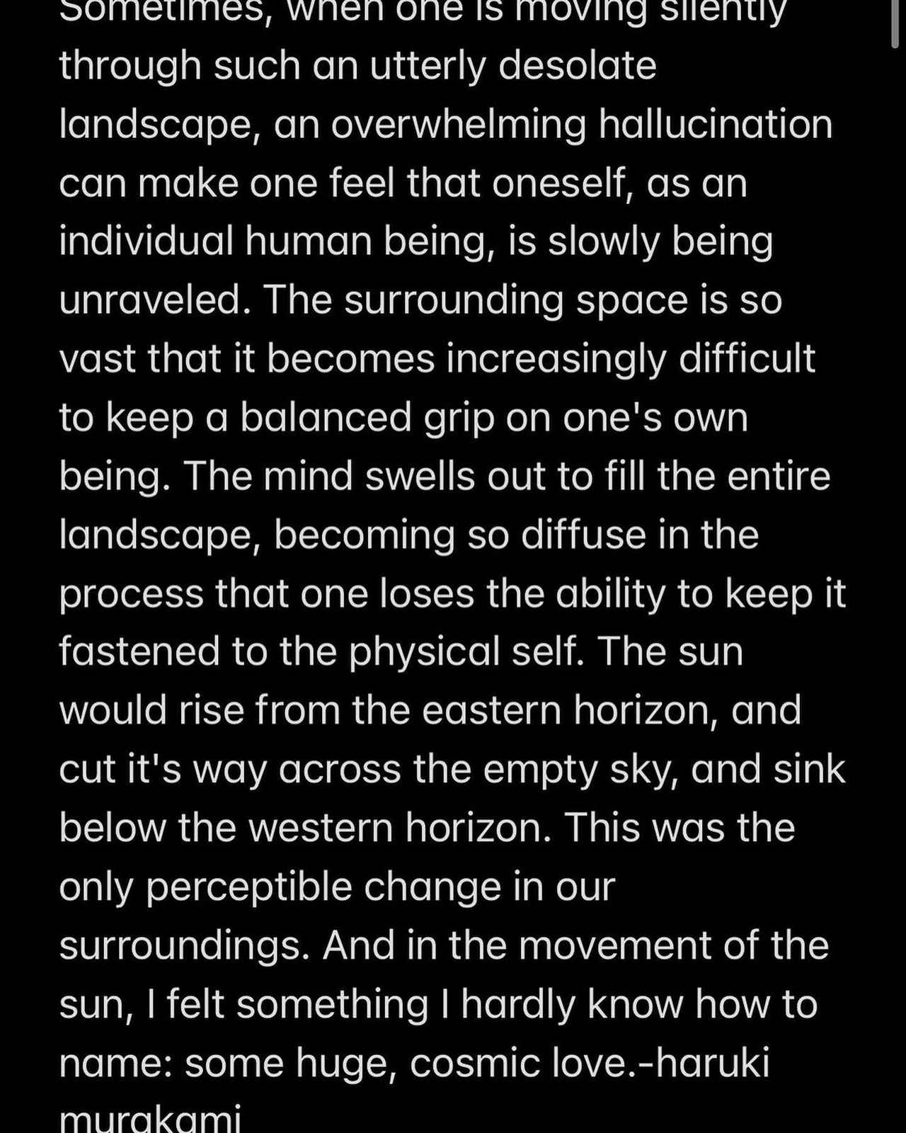 ダヴはファンへのメッセージと併せて、自分自身への愛を肯定するように、鏡越しに自身を撮影したセルフィーや、メイクを落とした後に撮影したと思われるセルフィーなどを公開しているのだけれど、それらの写真と並べて、村上春樹による『ねじまき鳥クロニクル』の一節を引用した画像を投稿している。