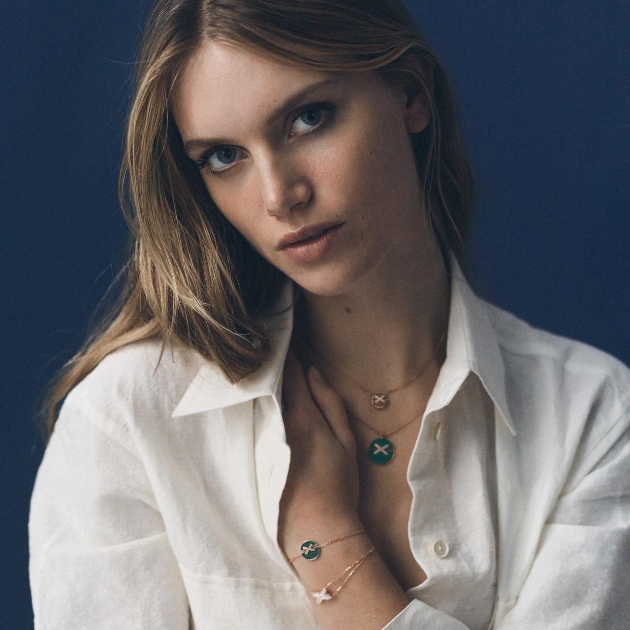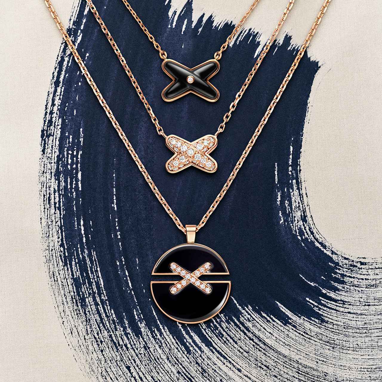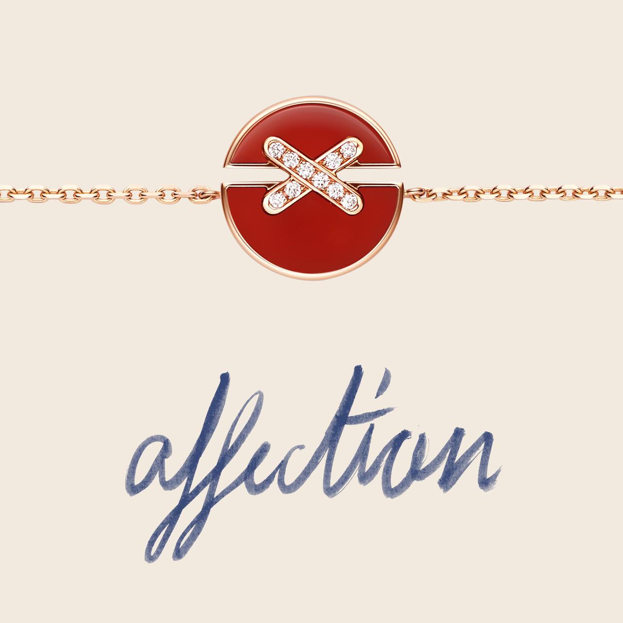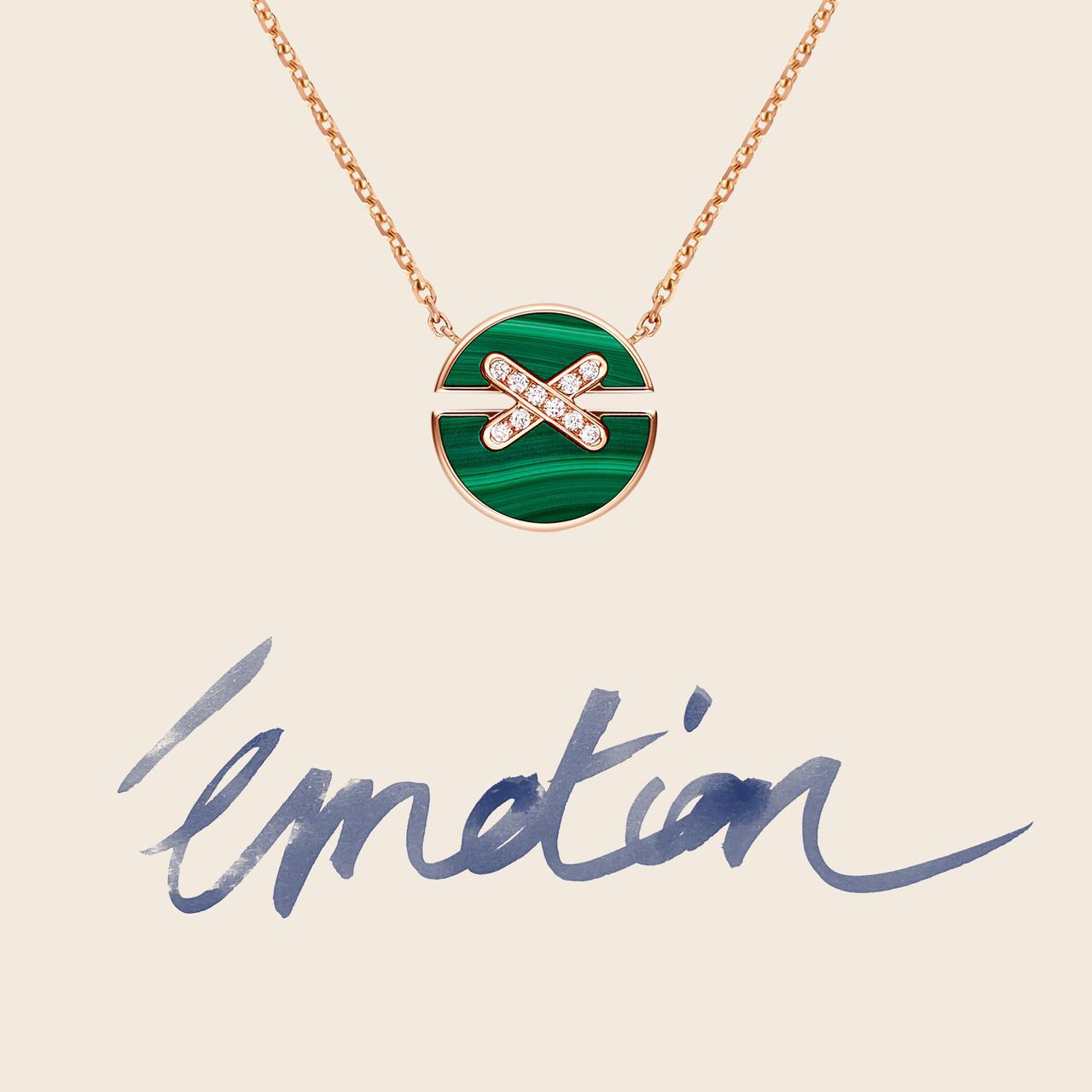 ジュ ドゥ リアン ハーモニーは、“完全なるもの”のシンボルを表すサークルシェイプを使い、異なる2つのパーツが交差するリンクによって結ばれたデザイン。新作にはマラカイト、 オニキス、カーネリアンのバリエーションが加わった。