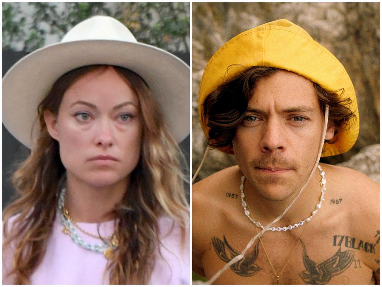 シンガーのハリー・スタイルズの新恋人とウワサされる俳優のオリヴィア・ワイルドが、以前、ハリーが身につけていたのとそっくりなネックレスをつけているところを激写!(フロントロウ編集部)
