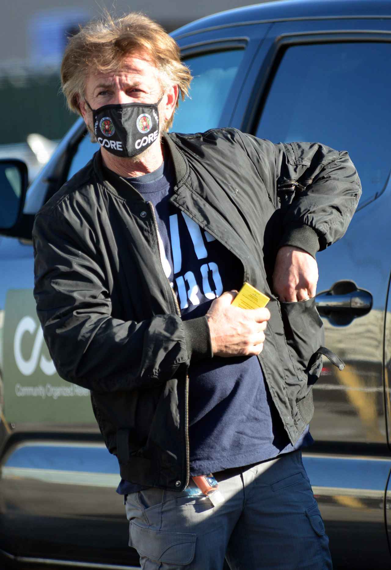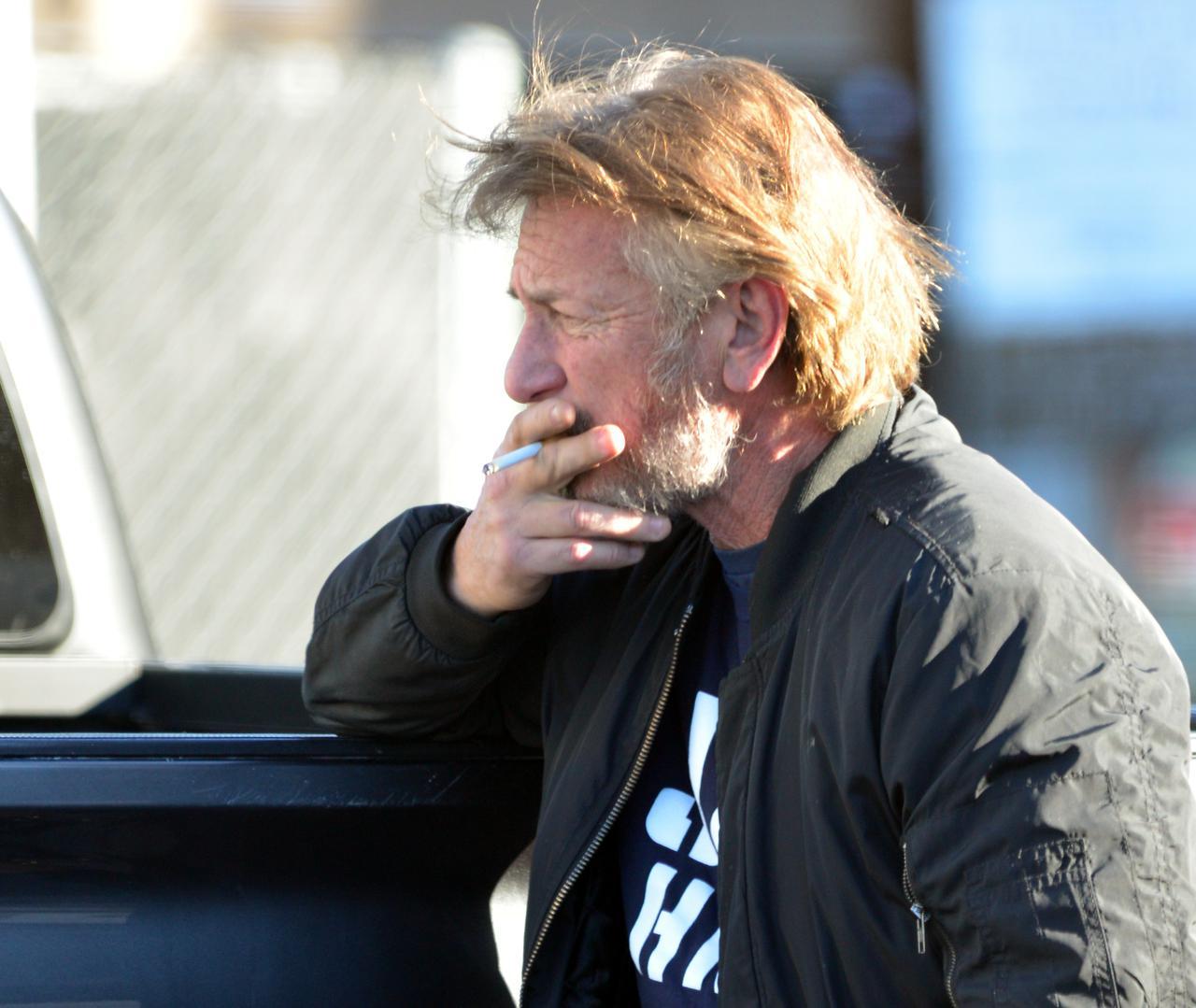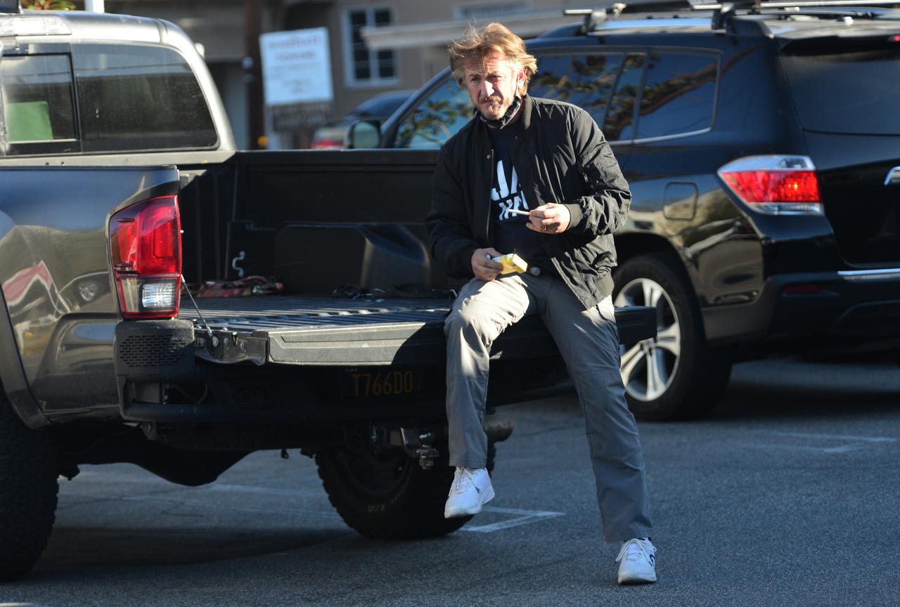 俳優のショーン・ペンがアメリカ・ロサンゼルスの駐車場でリラックスしている姿を激写。その姿が映画のワンシーンのよう。(フロントロウ編集部)