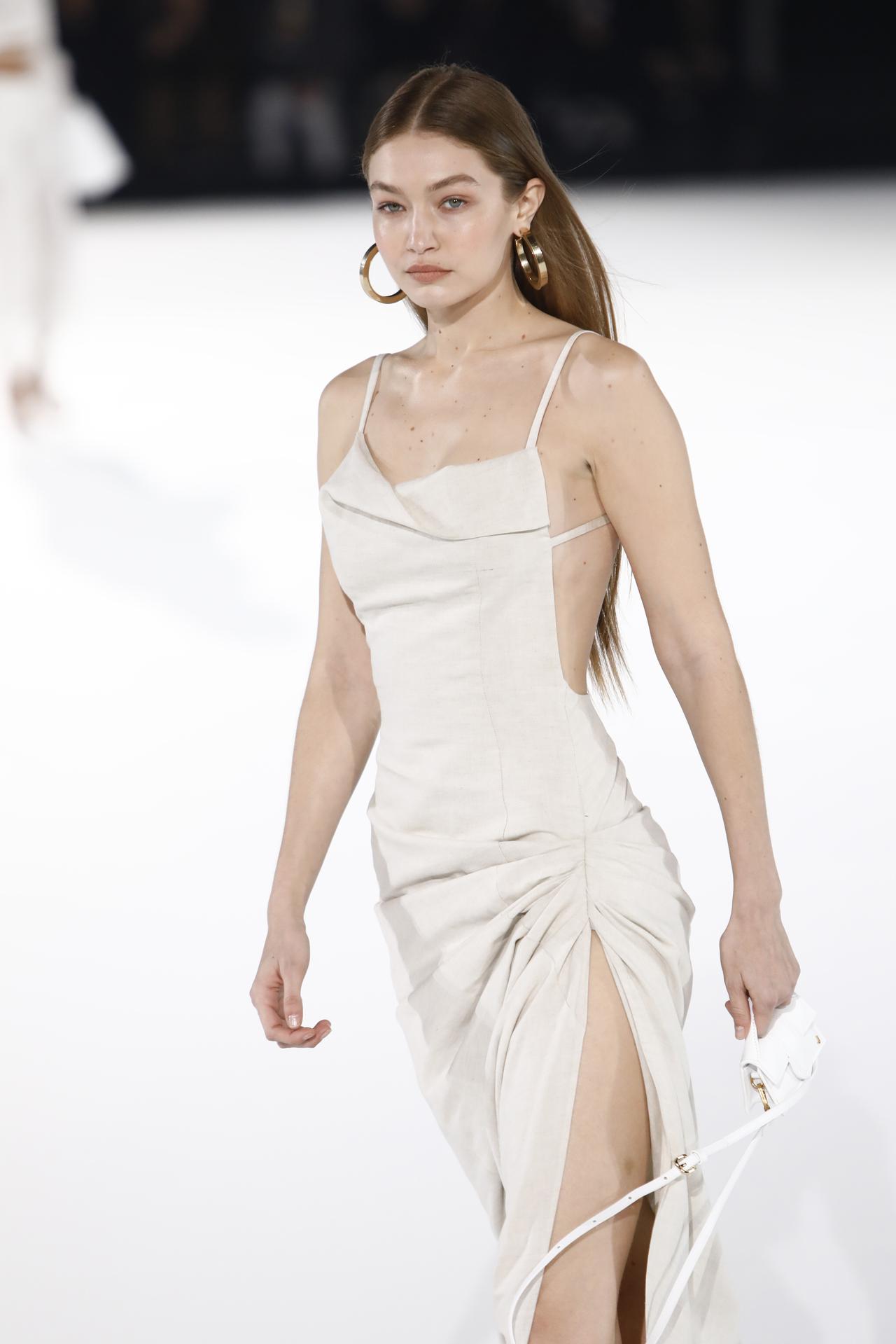 ジャックムス(Jacquemus)のショーでランウェイを歩くジジ・ハディッド。この時、すでに彼女のお腹の中にはゼイン・マリクとの子が。