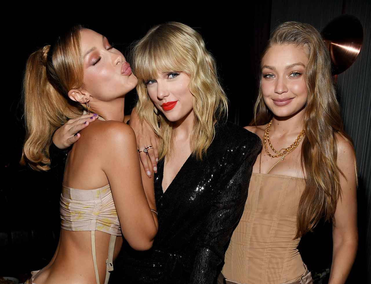 左からジジの妹で同じくモデルのベラ・ハディッド、テイラー・スウィフト、ジジ・ハディッド。