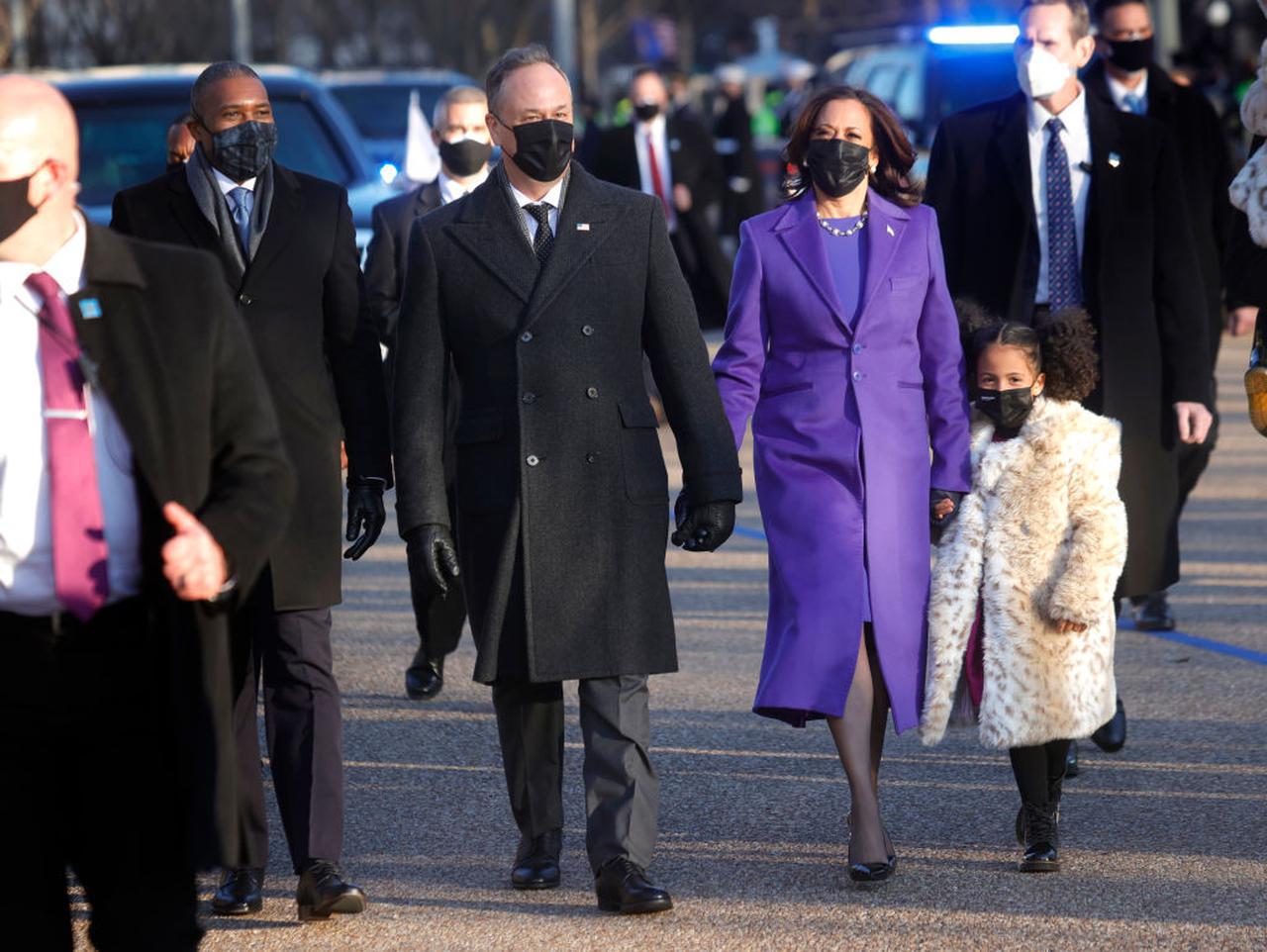 そんなハリス副大統領の側を歩く、カワイすぎる少女の姿も話題に。ご機嫌が良さそうに一緒に歩いているのは、ハリス副大統領の姪ミーナ・ハリスの娘アマラ。アマラの妹リーラも参加し、コロナ禍の厳戒態勢の中で開催された会場では、その愛らしいルックスで人々を和ませた。