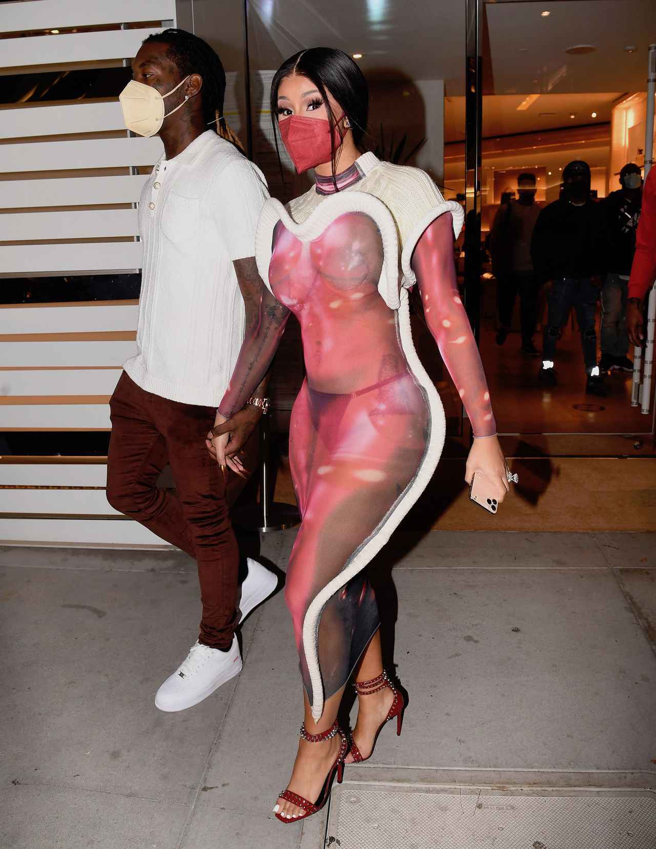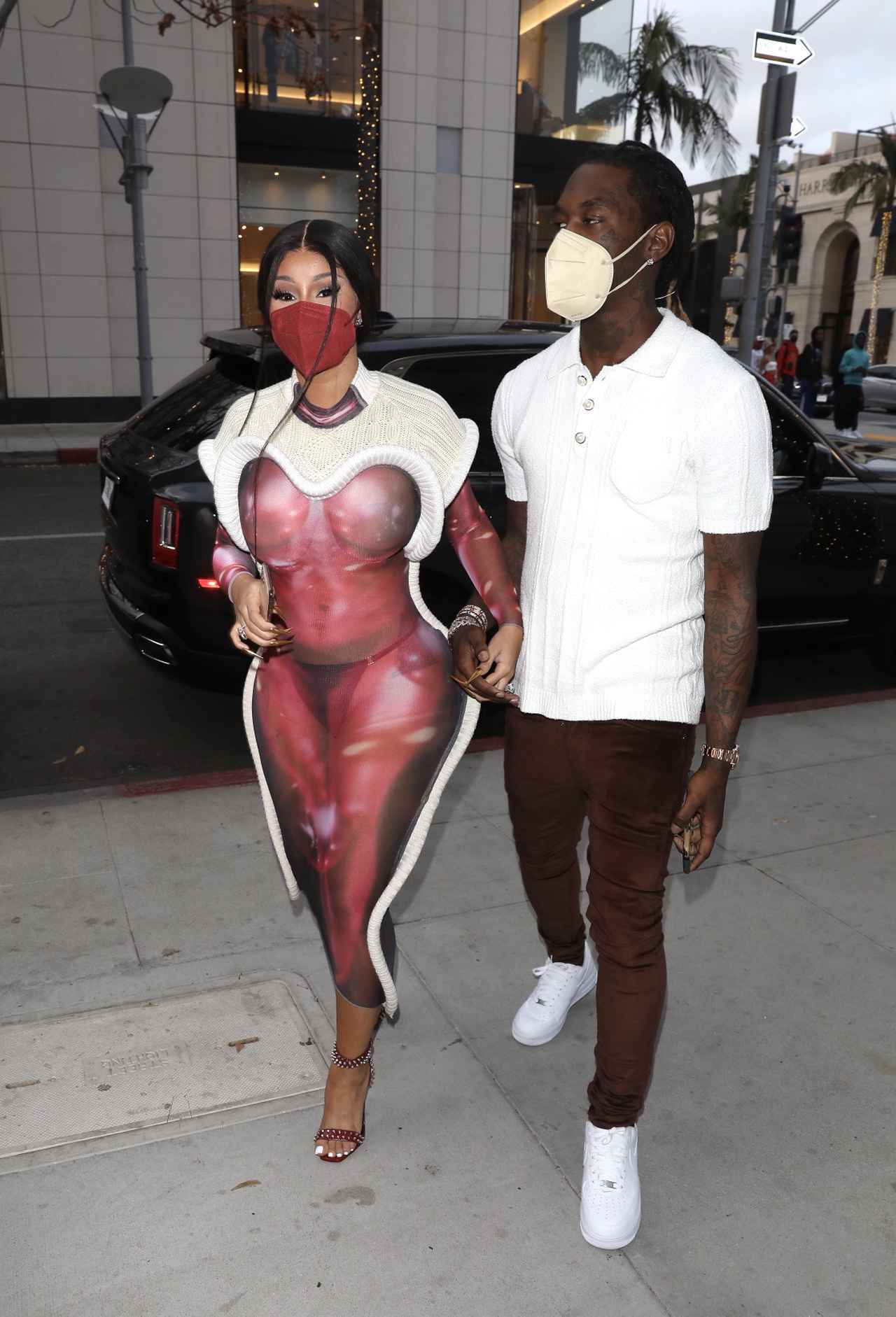 元ストリッパーという異色の経歴を持ち、さらに2019年のグラミー賞で、女性アーティストとして史上初めて最優秀ラップ・アルバム賞を受賞したことで知られるラッパーのカーディ・Bが、“目の錯覚”を利用した進化型ニットワンピを着て、夫でヒップホップグループのミーゴスのメンバーであるオフセットとショッピングへ出かけるところをキャッチした。