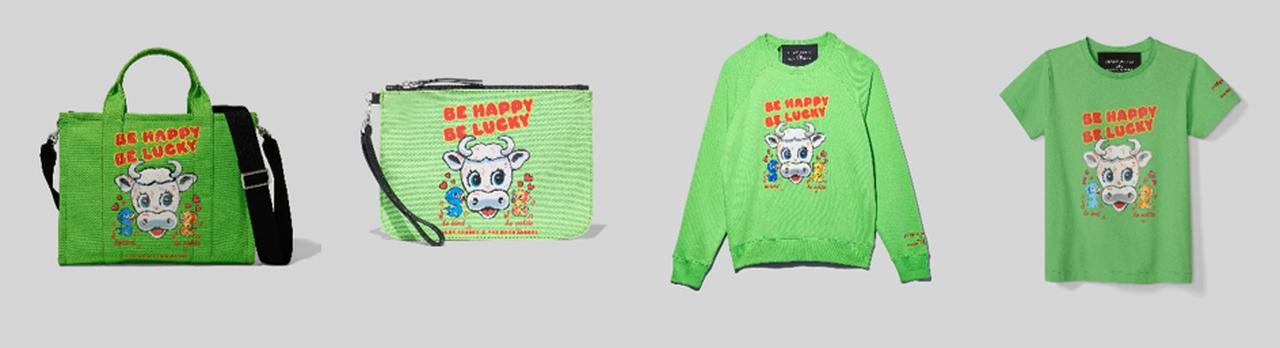 その中で最も注目したいのは、2021年の干支である「丑」がデザインされたアイテム。各ブランドが、2021年に丑のデザインが入ったアイテムを発表しているけれど、さすがマークとマグダのコラボだけあり、かなりポップ。丑のデザインがほどこされたアイテムには、”Be Happy, Be Lucky(=Happyに、Luckyに過ごして)”、”Be kind(=優しく)”、”Be polite(=礼儀正しく)”というハッピーな気分になるメッセージが添えられている。