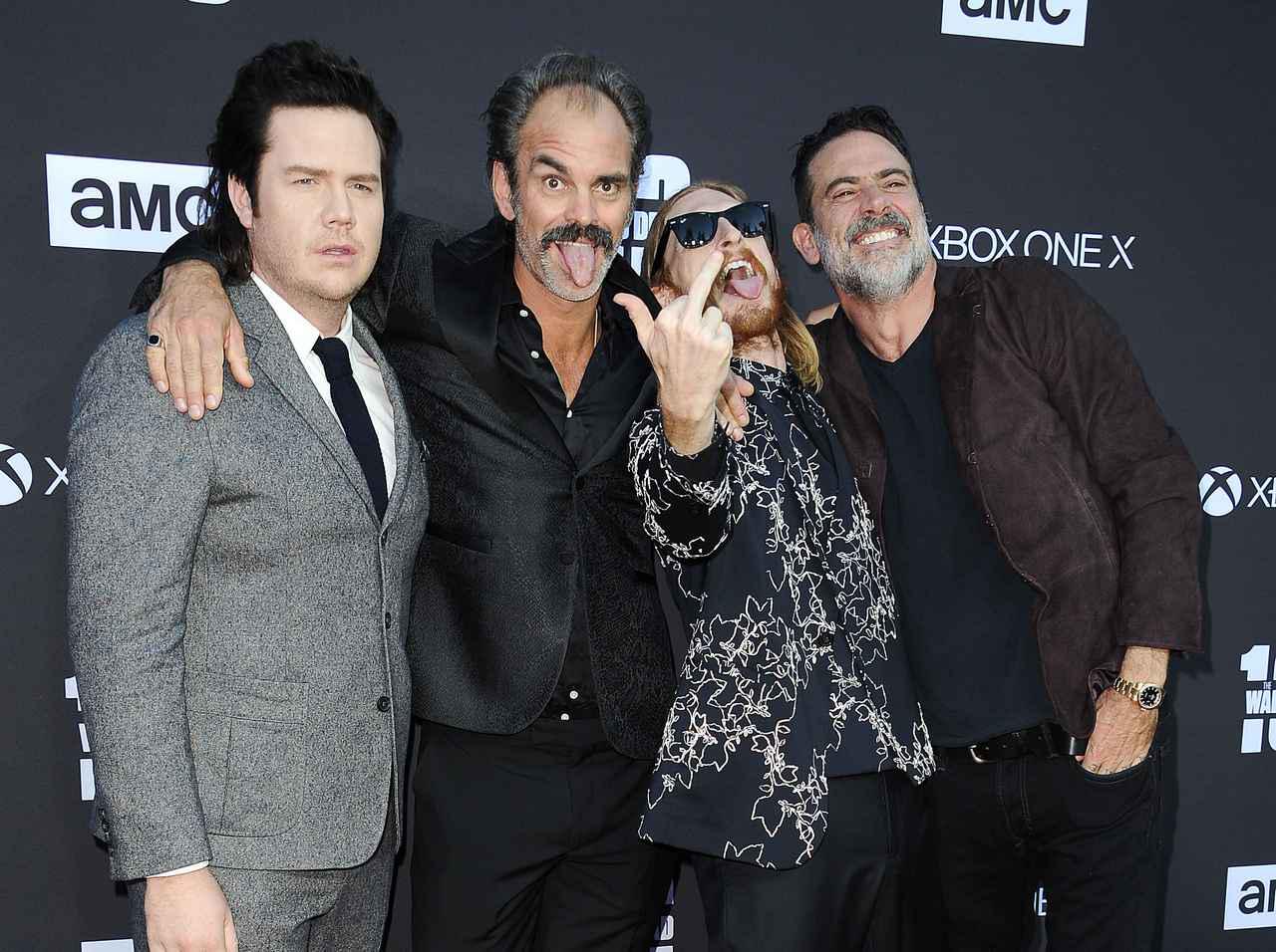 左より、『TWD』ユージーン役のジョッシュ・マクダーミット、サイモン役のスティーブン・オッグ、ドワイト役のオースティン・アメリオ、ニーガン役のジェフリー・ディーン・モーガン。