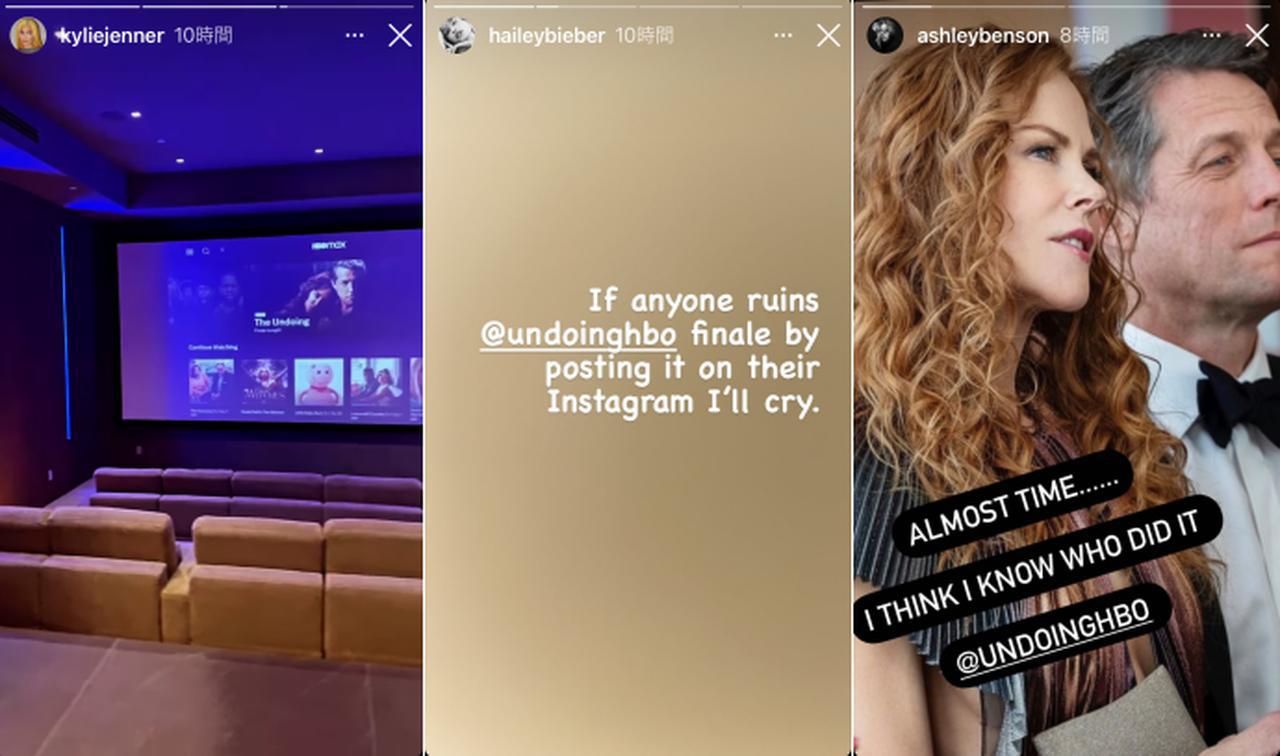(左から)ドラマ『フレイザー家の秘密』についてインスタグラム・ストーリーズを投稿した、カイリー・ジェンナー、ヘイリー・ビーバー、アシュレイ・ベンソン。