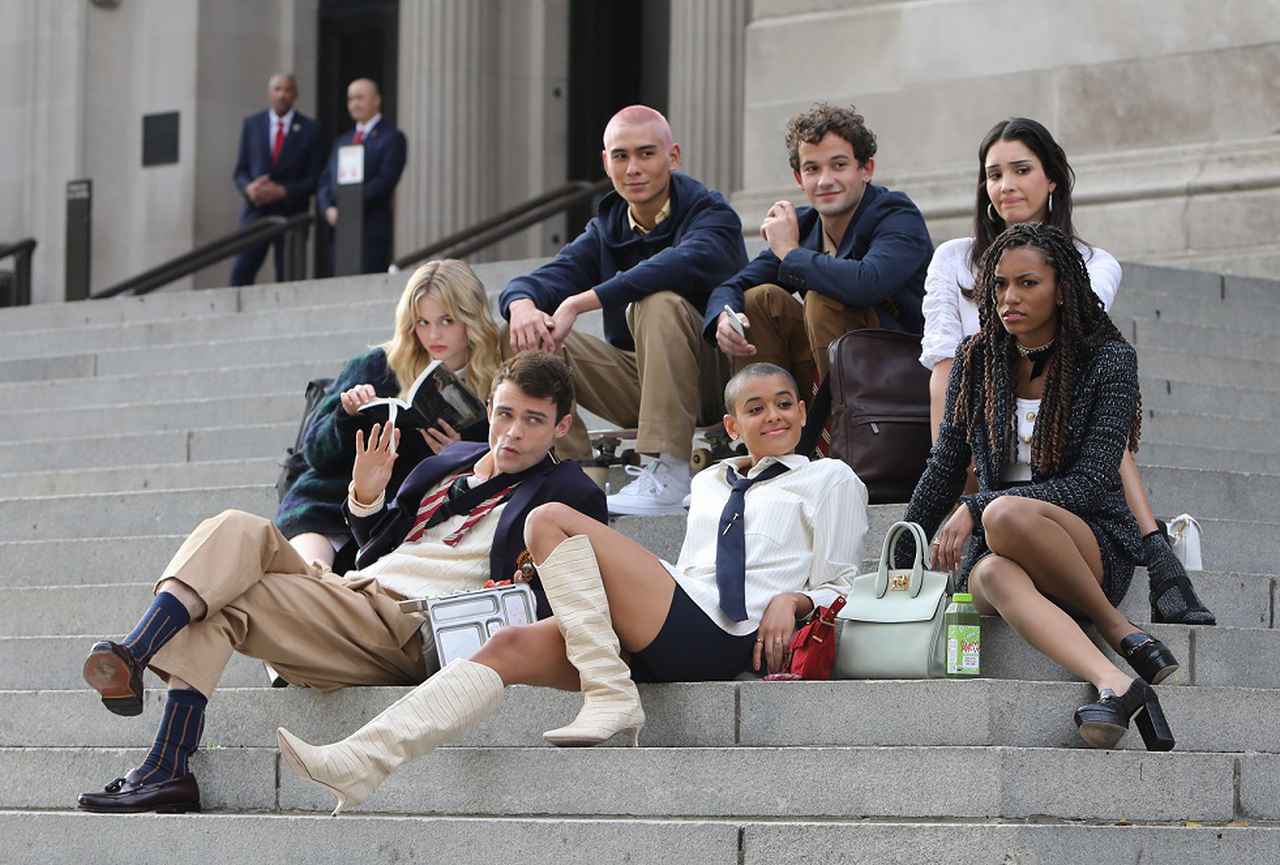 『ゴシップガール』新作の撮影風景。オリジナル版にも登場したニューヨークのメトロポリタン美術館の階段にて。