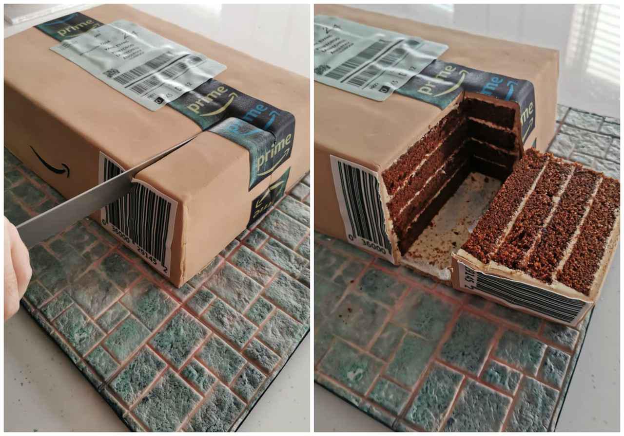「毎週のようにアマゾンから息子宛ての荷物が届くの。ロックダウン(都市封鎖)中はとくに多かった。だからこのドッキリは最高のアイデアだと思った」。こう話す母親いわく、アマゾンの箱そっくりのケーキを見た息子は、母の思惑どおりまんまと騙されたそうで、近くに行って確認するまで“またアマゾンから荷物が届いた”と信じきっていたそう。