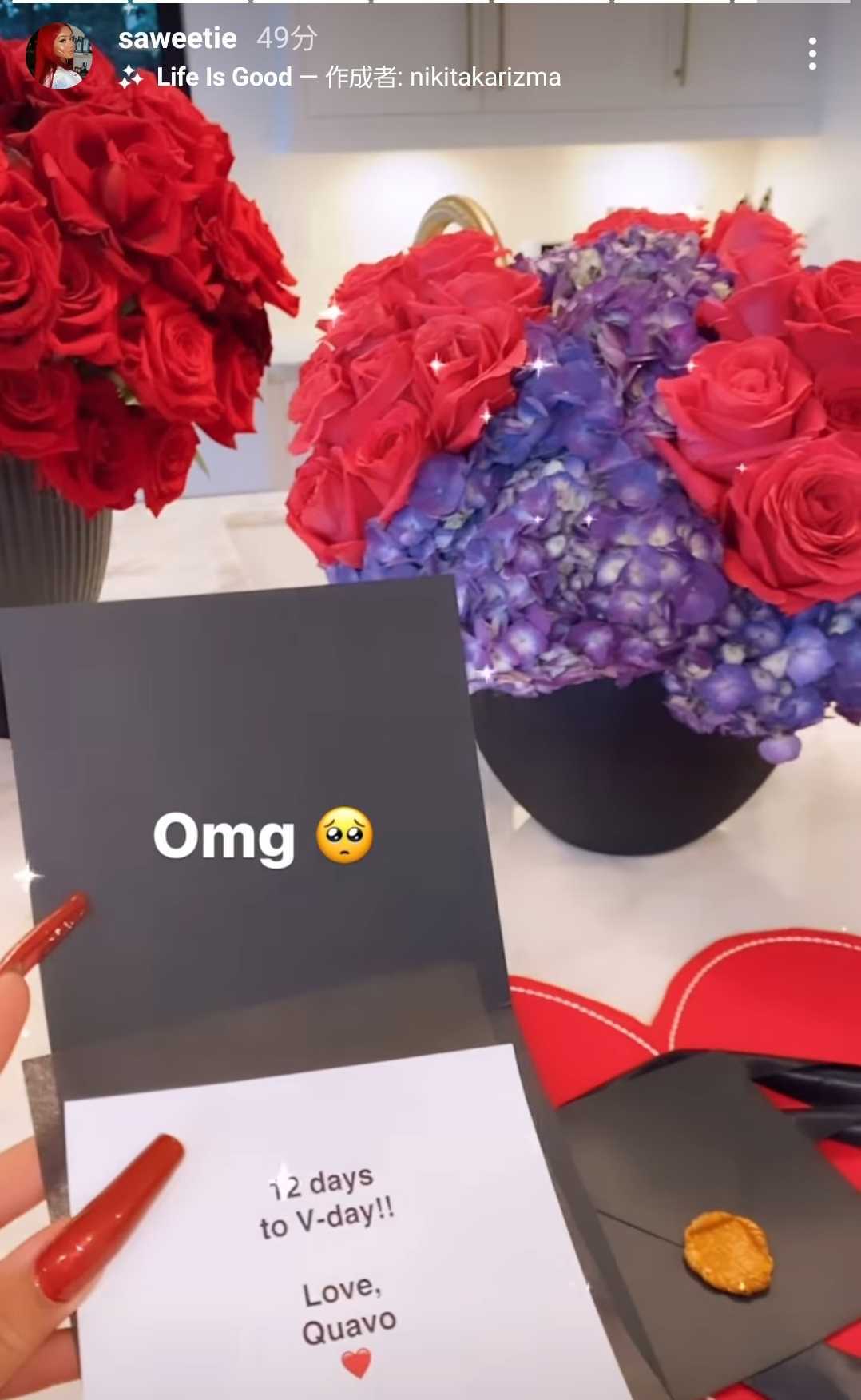 ミーゴスのクエヴォがバレンタインデーに向けてカウントダウンを行なっているところを恋人のスウィーティーが明かす。(フロントロウ編集部)