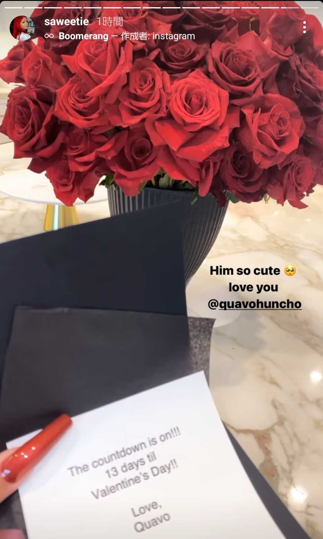 そんなクエヴォは2月14日のバレンタインの準備も万端。クエヴォはバレンタインデーにかなり力を入れているようで、なんと約2週間前からスウィーティーに花を贈っており、その様子をスウィーティーがインスタグラムで公開した。