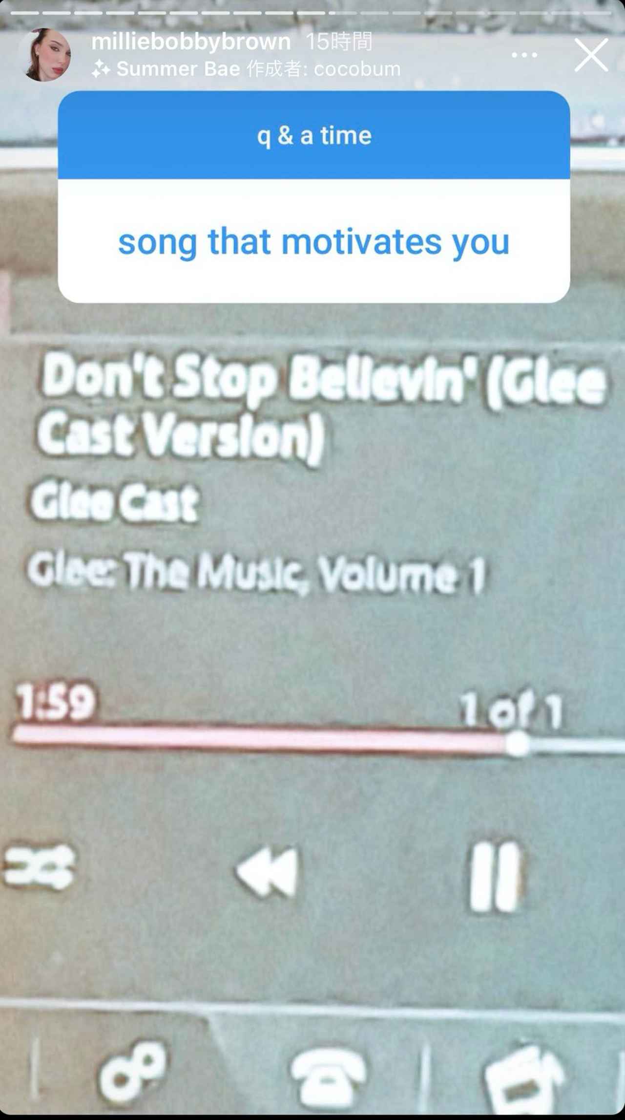 加えて、ミリーはQ&Aのなかで、ドラマ『glee/グリー』のキャストが歌う「Don’t Stop Believin’」が“モチベーションをあげてくれる曲”であることも明かしている。