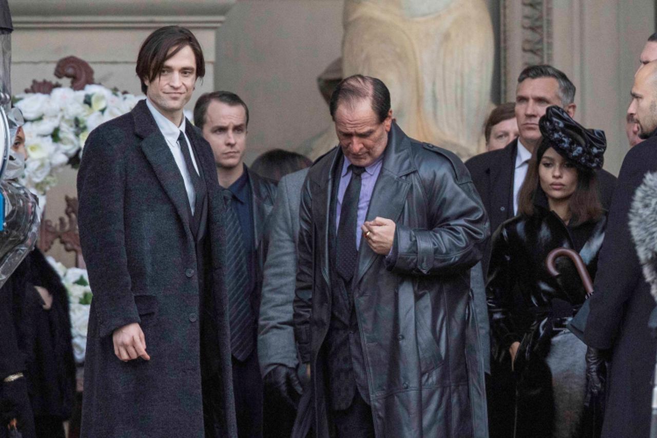 『ザ・バットマン』で共演するロバート(左端)とゾーイ。中央は”ペンギン”に扮したコリン・ファレル。