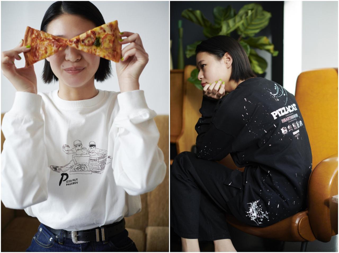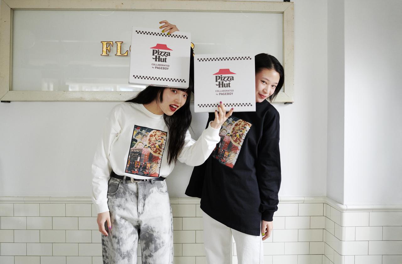 今回のコラボでは「ピザハット」のピザを題材に、キャッチーなイラストやフォトプリントのロンTをはじめ、個性あふれる人気イラストレーター3名がデザインを手がけたアイテムも展開。また、ロンTの購入者には先着でPAGEBOYと「ピザハット」コラボレーションの数量限定オリジナルピザBOXがプレゼントされる。