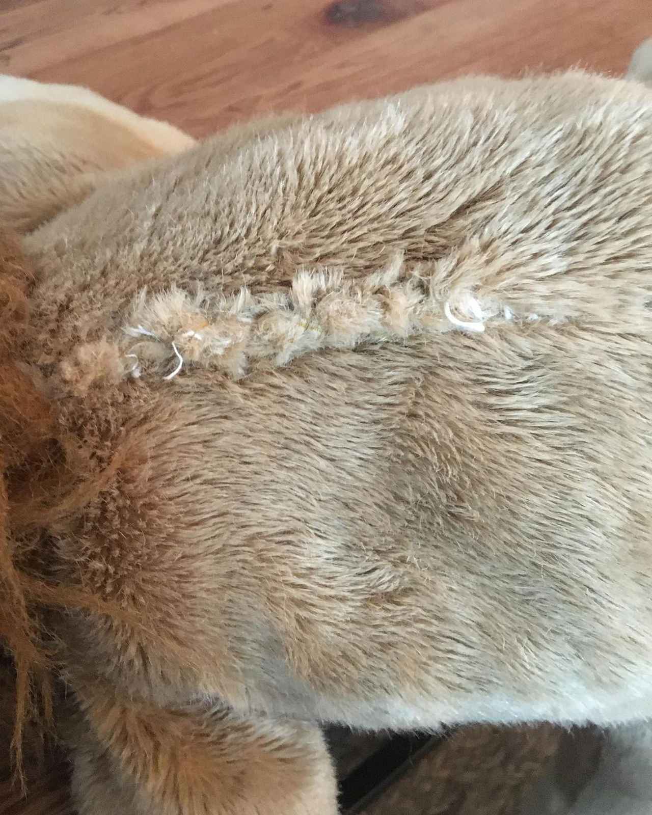 ところで、調子が悪かったのはドジャーだけではなかったようで、彼のお気に入りのおもちゃである、ライオンのぬいぐるみも一部が破れてしまっていたそう。「昨日、彼が手術を受けている間、お気に入りのライオンも手術を受けていたんだ」とクリスは続けて綴り、ドジャーが手術で不在の間に、自らの手で縫って直してあげたことを報告。「今まで何も縫ったことがなかったんだけど、急いで終わらせられたことを誇りに思うよ」と、今回が自身にとって初めての裁縫だったことも明かした。