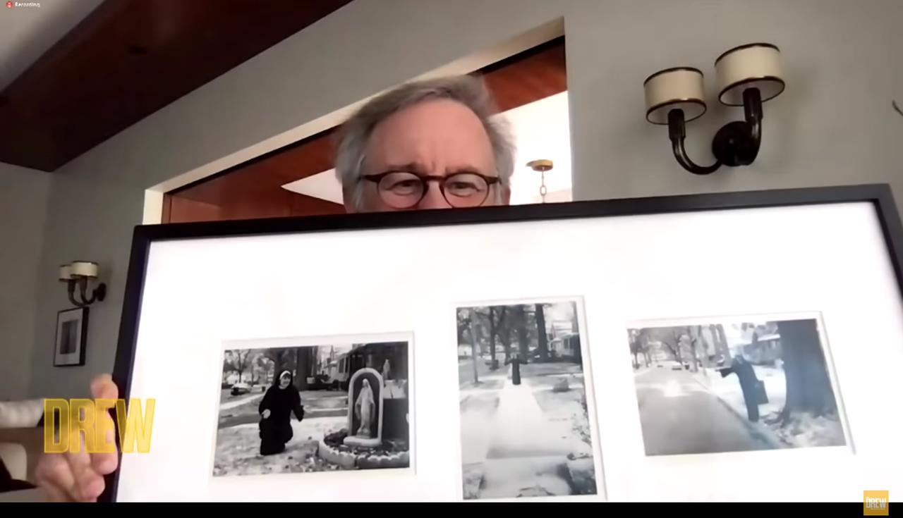 スピルバーグ監督のもとに送られてきたのは、懺悔の気持ちとして修道女に扮したドリューが無邪気な姿で写る3枚の写真。スピルバーグ監督いわく、1枚目の写真(左)は「ごめんなさい」、2枚目の写真(中央)は「光が見えた」、そして3枚目の写真(右)は「(自分が向かうべき場所へ)向かっているところ」という意味が込められているのだそう。(フロントロウ編集部)