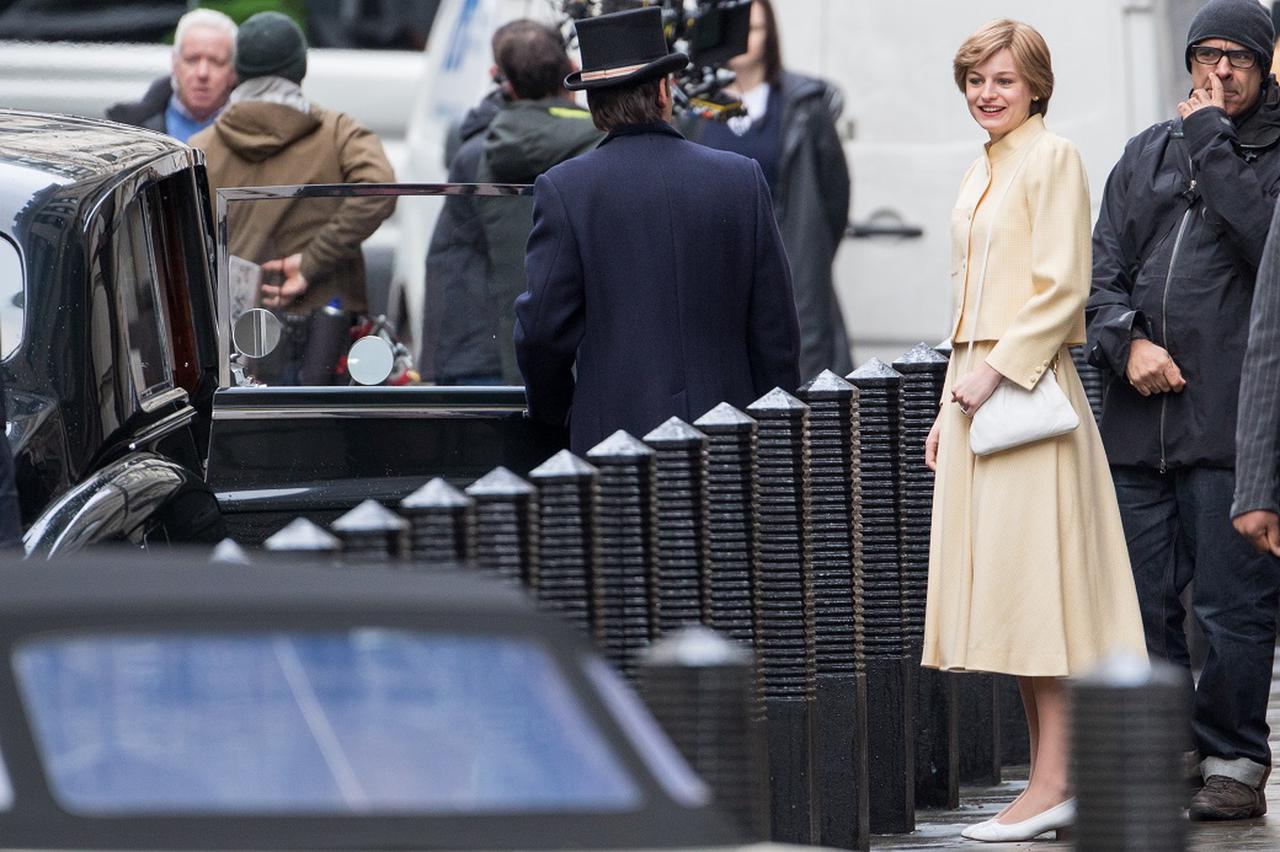 ロンドンで『ザ・クラウン』を撮影中のヘンリー王子の母ダイアナ妃役のエマ・コリン。