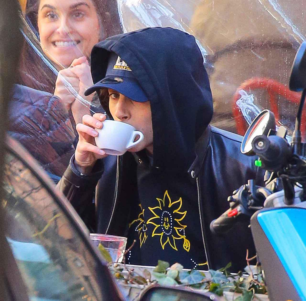 そして、あるレストランにつくと、外の席に座って朝ごはん。1人で食事をしているだけなのに、なんだか映画のワンシーンのような画が撮られるのはさすがティモシーといったところ。