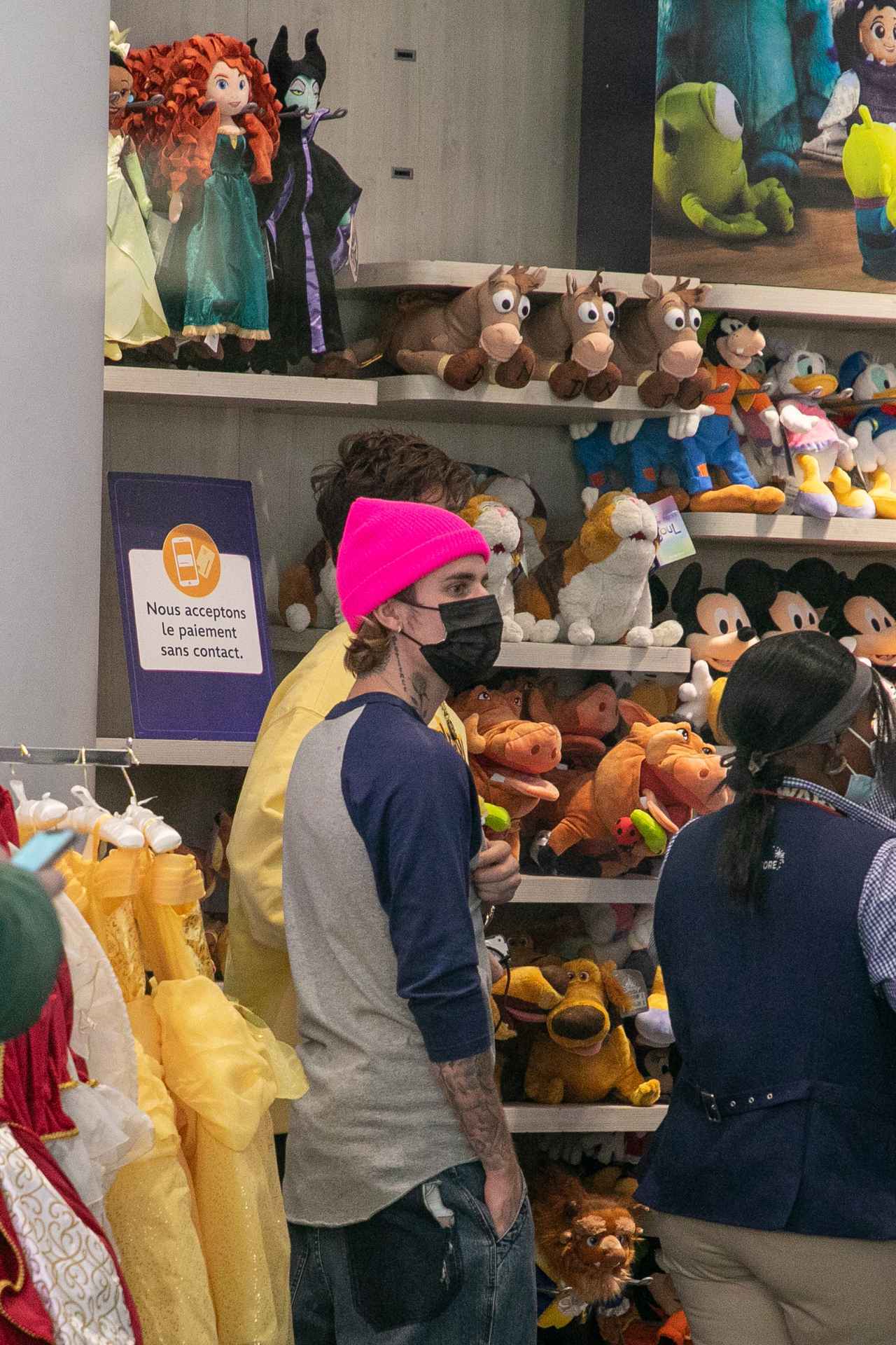 妻とフランスのパリに滞在しているシンガーのジャスティン・ビーバーが、現地のディズニーストアで買い物をしているところをパパラッチされた。(フロントロウ編集部)