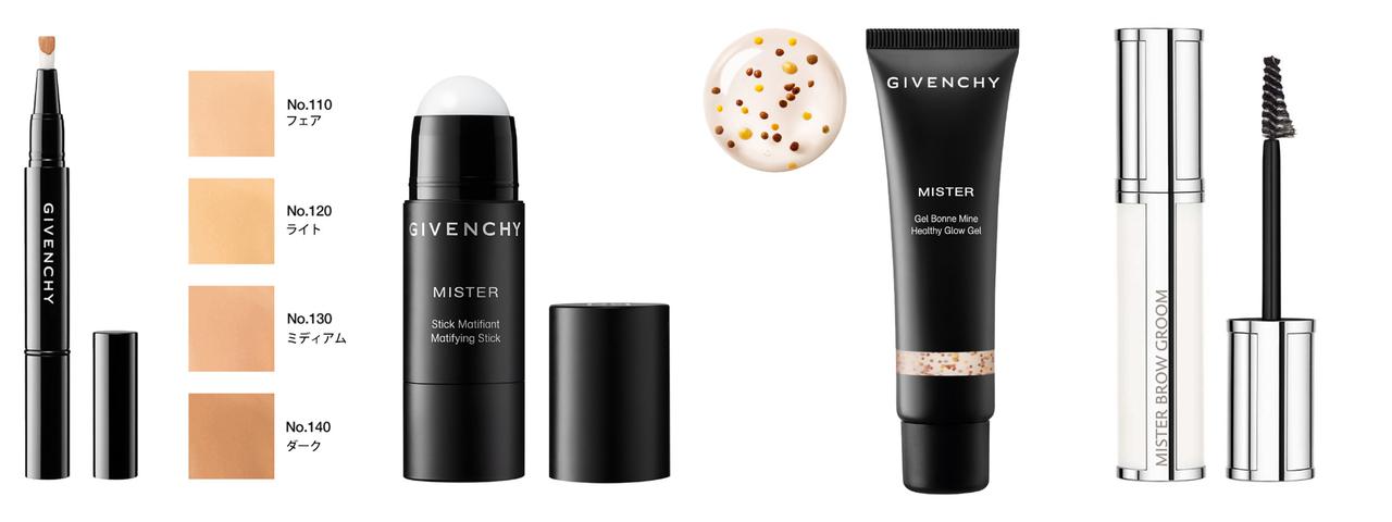 ほかにも、既存品であるペンタイプのコンシーラー「ミスター・コレクティング・ペン」(全4色 各5,390円/税込)、メイクアップベース「ミスター・マット・スティック」(5,940円/税込)と「ミスター・ヘルシー・グロウ・ジェル」(6,490円/税込)、透明のアイブロウマスカラ「ミスター・ブロウ・フィクサー」(3,850円/税込)もお見逃しなく。