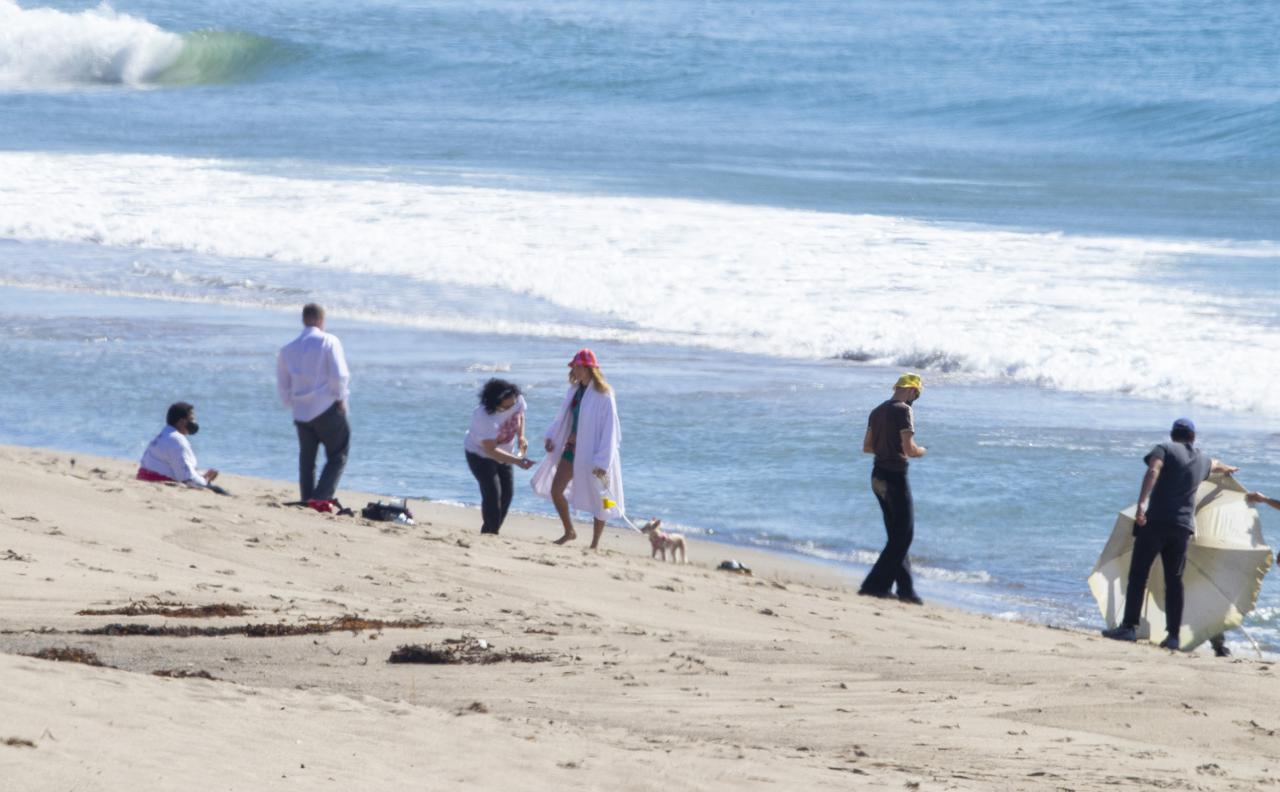 上の写真を見ておわかりのように、プライベートではなく、雑誌もしくは広告の撮影を行なっていたようで、よく見るとヘイリーのまわりにはカメラマンやスタイリスト、メイクアップアーティストといった撮影クルーの姿が。今回の撮影は、新型コロナウイルスのガイドラインに沿って感染予防対策をしっかりと取ったうえで、最小限の人数で行われたと米Page Sixは伝えている。