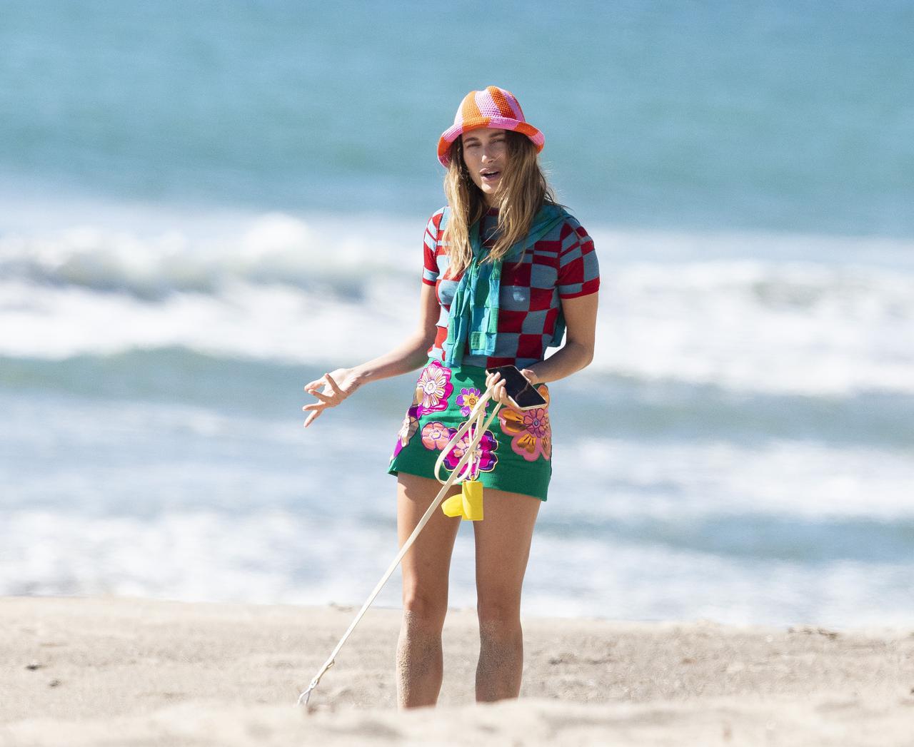 柄on柄の色鮮やかな装いに、裸足でビーチを歩くヘイリー。この日は夫のジャスティンの姿はなく、ヘイリーとオスカーだけだったよう。