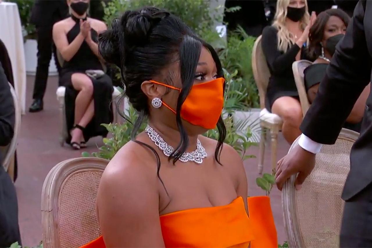 ビヨンセとコラボした「Savage Remix」が最優秀ラップ・ソングを受賞したメーガン・ジー・スタリオン。メーガンはDolce&Gabbana(ドルチェ&ガッバーナ)のベアトップドレスでパワフルなドレスコーデを披露。ネオンカラーは、コロナ禍で落ち込み気味な時期をポジティブに過ごすためにも、今年の注目カラーと言われている。