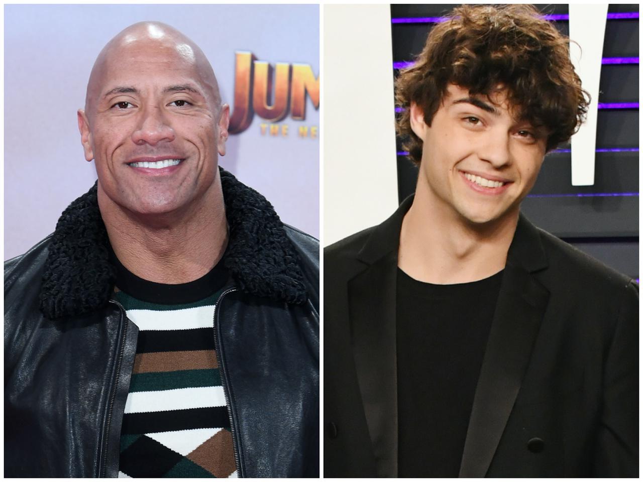 映画『ブラックアダム』で共演するドウェイン・ジョンソンとノア・センティネオ。