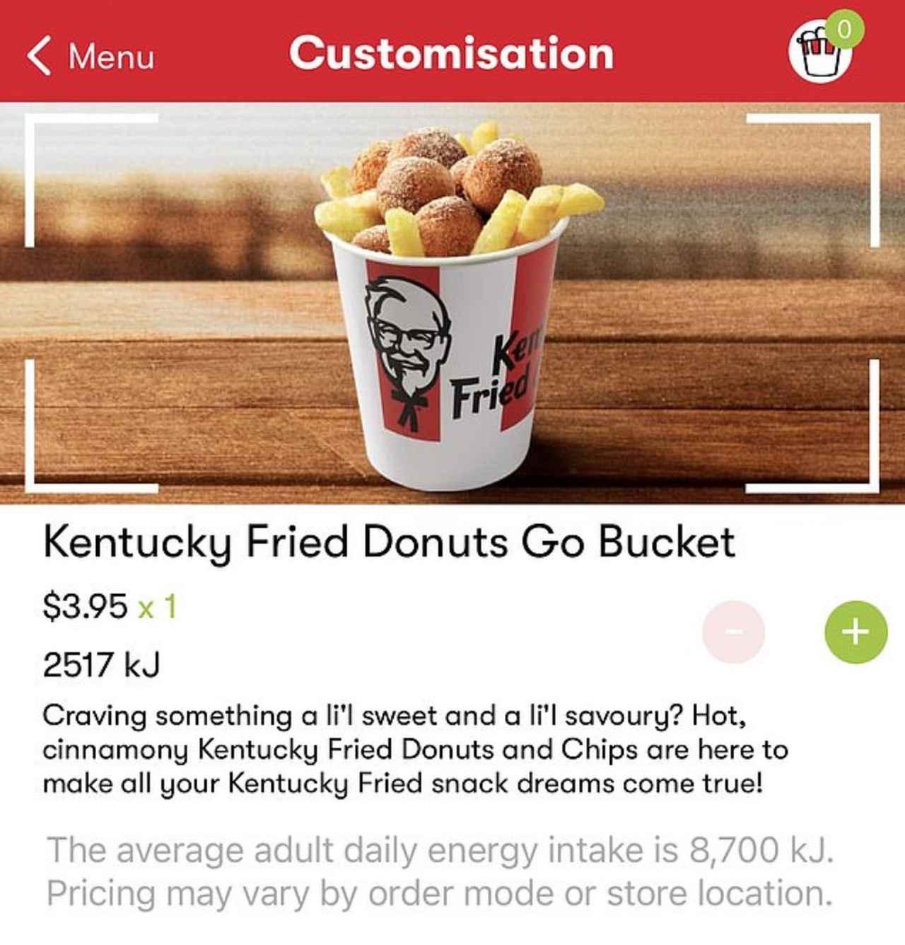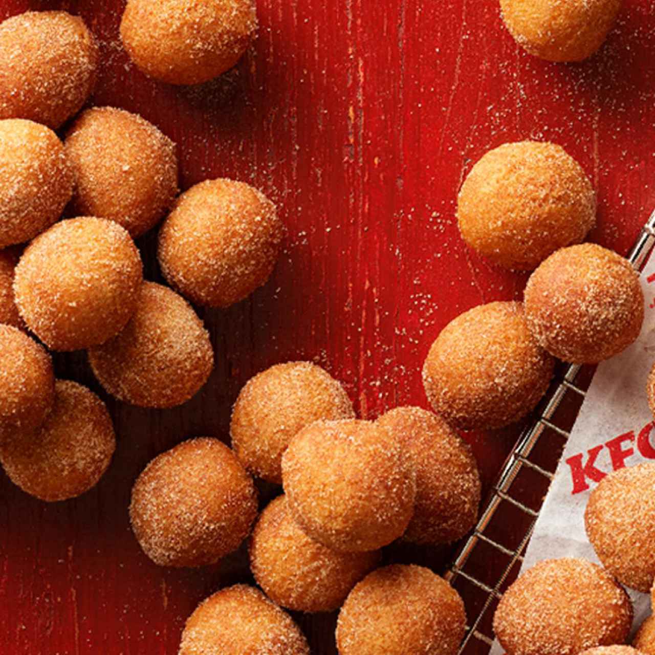 ケンタッキーで食べられる甘いものといえばビスケットが真っ先に浮かぶと思うが、つい最近、そこにドーナツが期間限定で仲間入り。現在、オーストラリアのケンタッキーでは、シナモンシュガーがかかったひと口サイズのドーナツが複数個入ったバケットが、MサイズとLサイズの2種類販売されている。