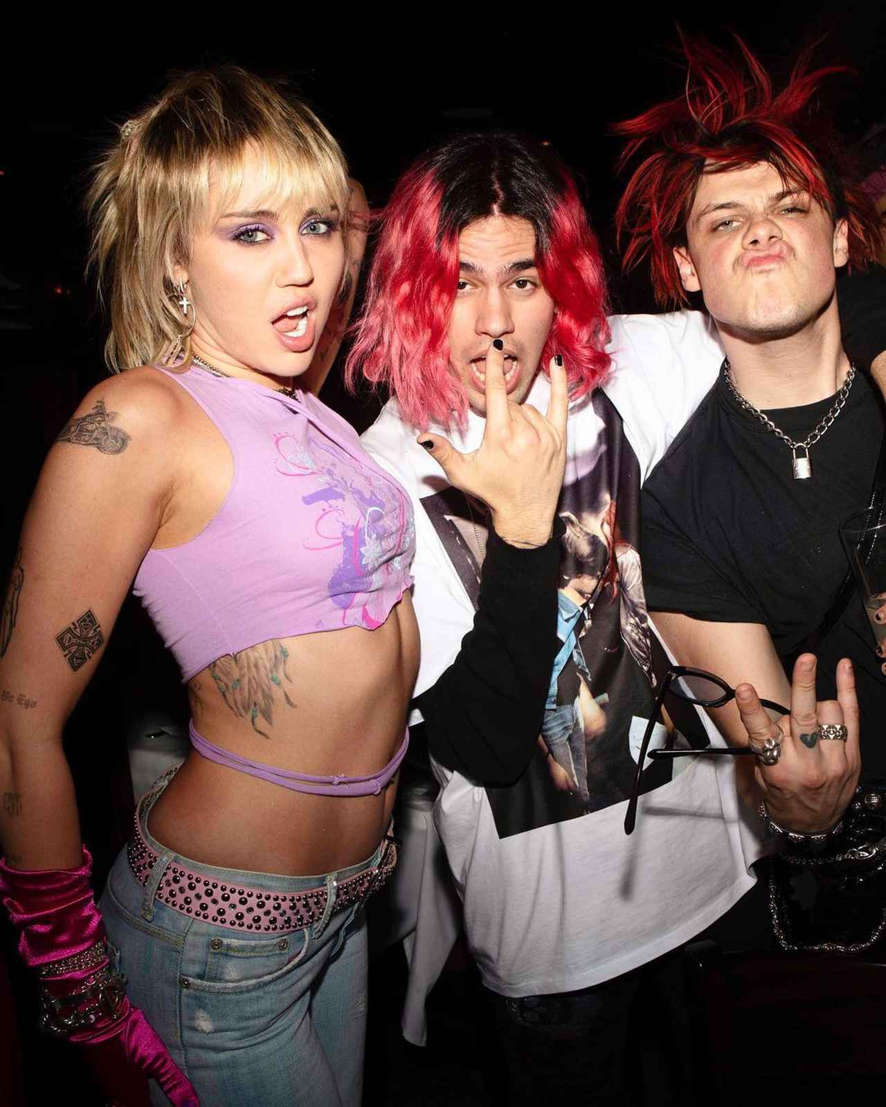 マイリーがインスタグラムで公開した、パーティーでのヤングブラッド(一番右)らとの写真。