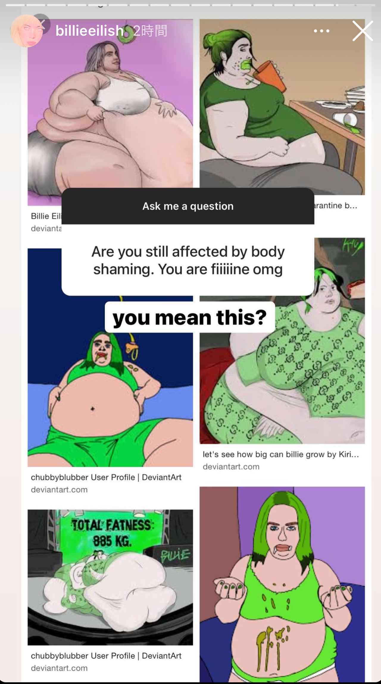 ビリーはそのなかで、“今も体型批判に悩まされていますか?”という質問にも回答。ビリーはその質問に対し、わざとらしくお腹の大きさなどが強調されて描かれた自身をモデルにした一連の絵の画像を投稿して、「これのこと?」というコメントを添えた。