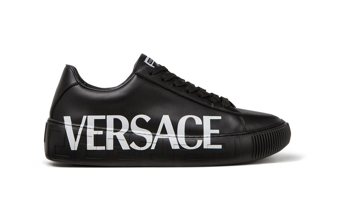 ハイトップモデルは足首に円形のメドゥーサ ラベルが飾られ、ロートップモデルはヒールカウンターとタンにロゴをデザイン。カラーバリエーションは、定番のブラックとホワイトから、大胆なブルー、レッド、パープル、ピンクまでと豊富なカラーが並ぶ。また、アウトソールは同色のロゴ柄で、ヒール部分にはヴェルサーチェのシンボルであるメドゥーサが隠されている。