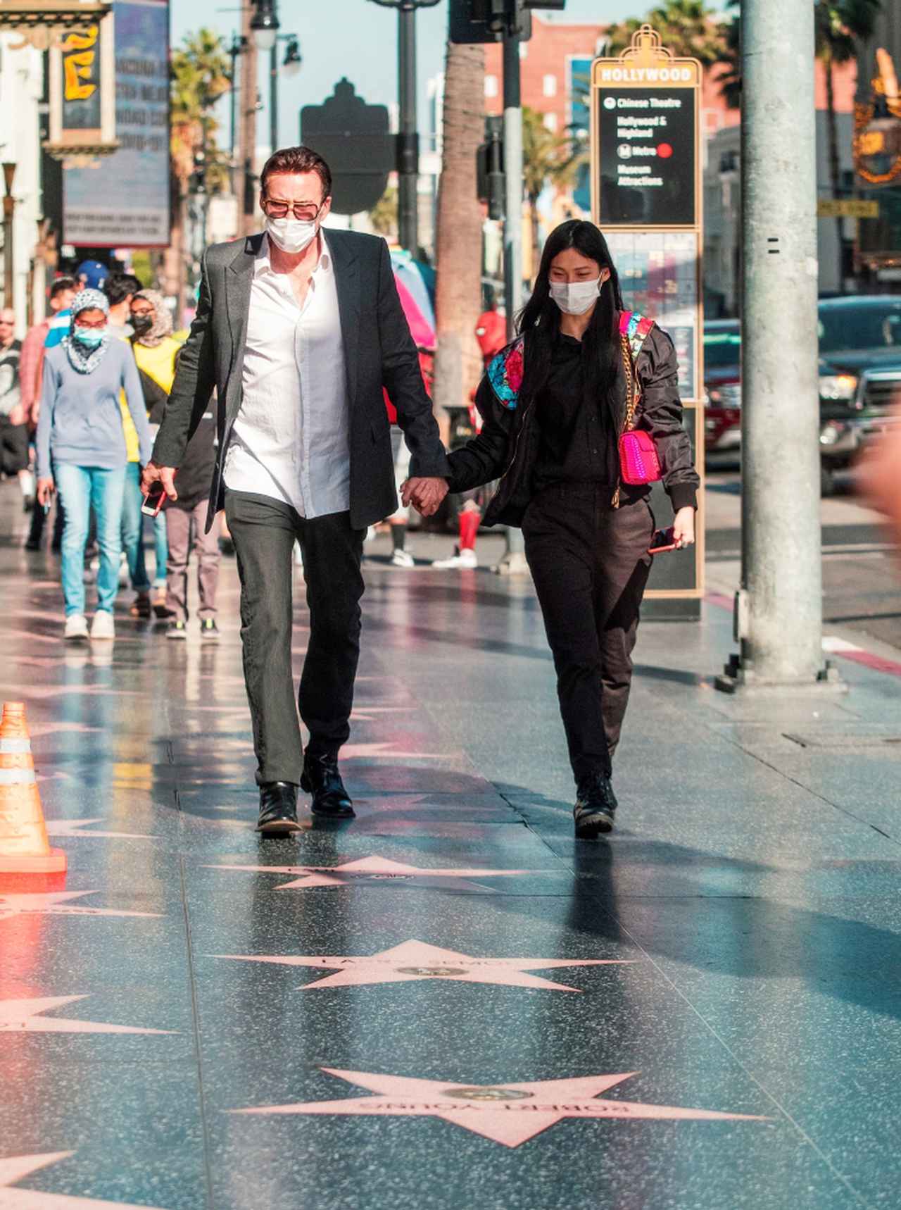 マスクを着用してコロナ対策をし、ギュッと手をつないで通りの向こうから歩いてきた2人は、地面に視線を注ぎ、ときにはニコラスが星形プレートを指さして何かを説明する様子も。