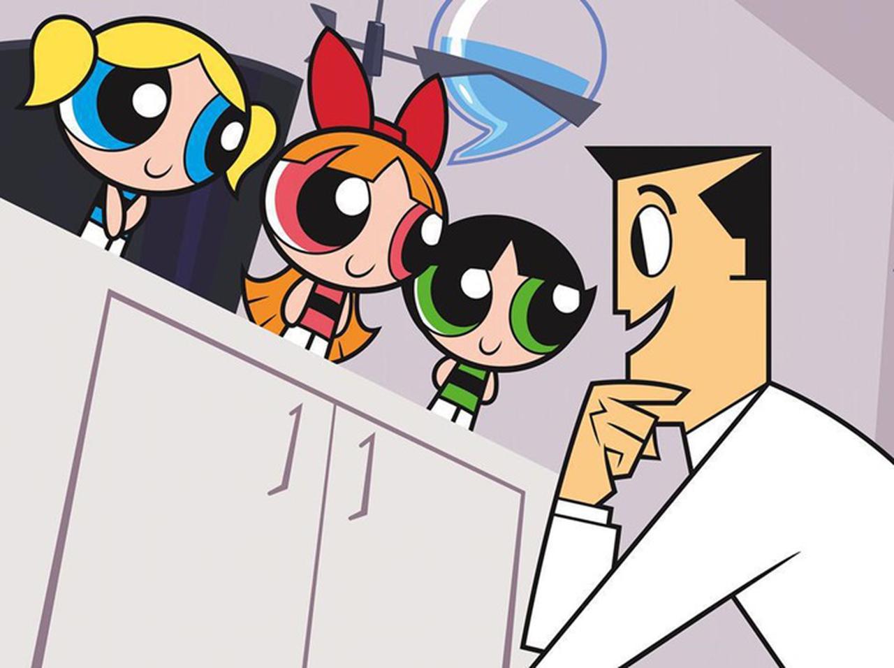 遺伝子工学を研究するユートニウム博士が、お砂糖、スパイス、ステキなものをいっぱい混ぜて、とびっきりかわいい女の子を作るはずが、間違って「ケミカルX」という余計な薬品を入れてしまったことから誕生したブロッサム、バブルス、バターカップが主人公の米カートゥーンネットワークの人気アニメ『パワーパフ ガールズ』。