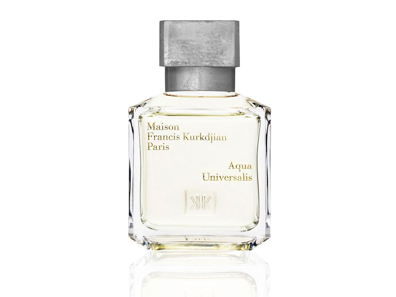 メゾン フランシス クルジャンの代表的なフレグランス「アクア ユニヴェルサリス オードトワレ」。素肌と洗い立てのリネンやシーツの新鮮な空気をイメージした、透明感ときらめきのある爽やかなムスキーシトラスの香り。希少価値の高い香料を贅沢に使用し、シンプルながらこれまでになかった「自由」な香りを表現している。
