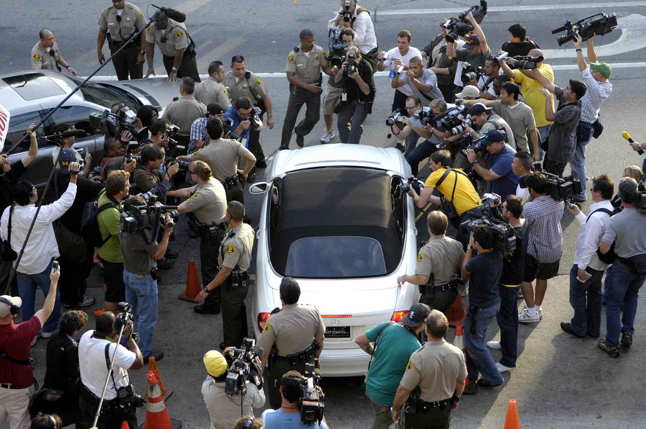 2007年10月、パパラッチに取り囲まれるブリトニー・スピアーズの乗った車。