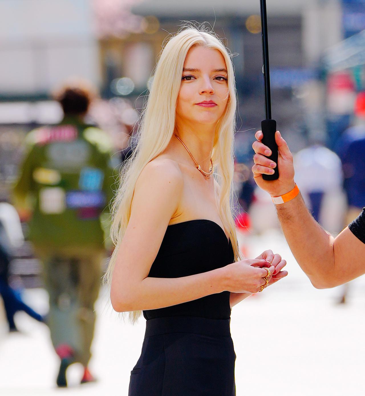 ニューヨークにて、ティファニー(Tiffany & Co.)の新キャンペーン動画を撮影中の俳優アニャ・テイラー=ジョイをキャッチ。モデル出身のアニャにかかれば、オフショットだって見事に決まってしまう。(フロントロウ編集部)