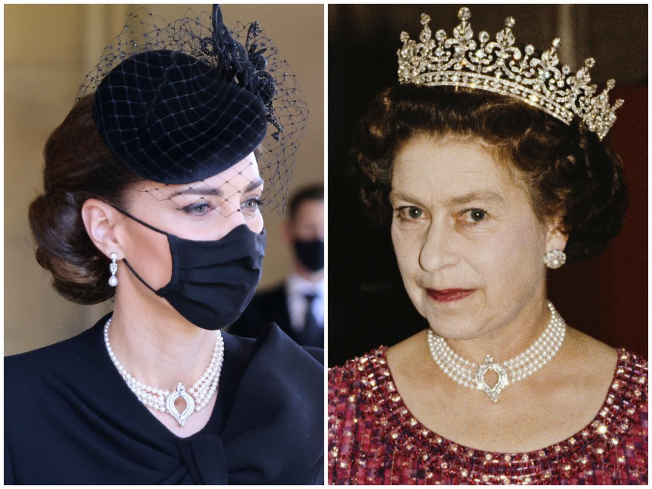 現地時間4月17日、ウィンザー城の聖ジョージ礼拝堂で執り行われたフィリップ王配(享年99歳)の葬儀に、夫のウィリアム王子とともに参列したキャサリン妃が、かつて日本政府からエリザベス女王に贈られた品を身につけていたことがわかった。