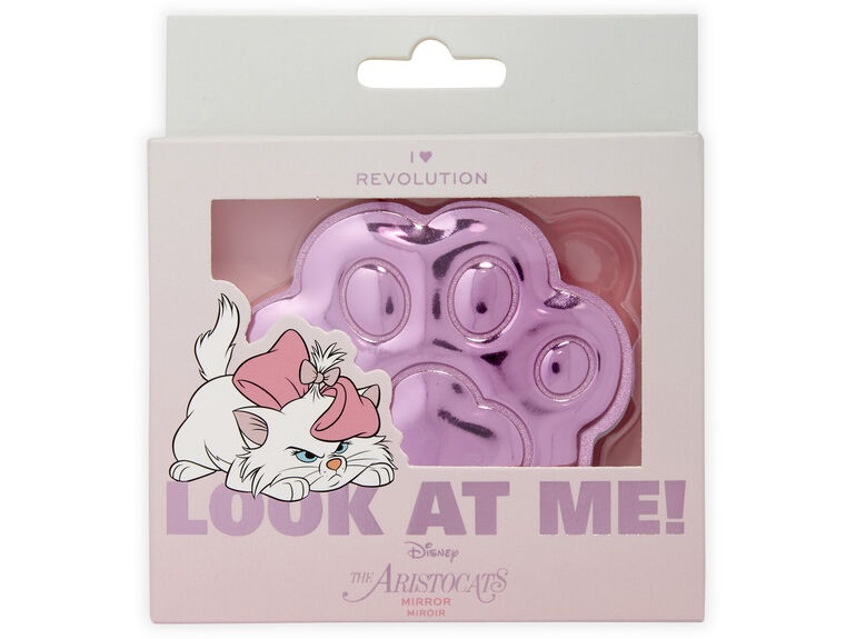 アイ・ハート・レボリューションとマリーのコラボコレクション「The Aristocats Marie Collection」のラインナップは、アイメイクやリップメイクなどのポイントメイクで使用するコスメから、ブラシやミラーなどのツールまで合計6種類。