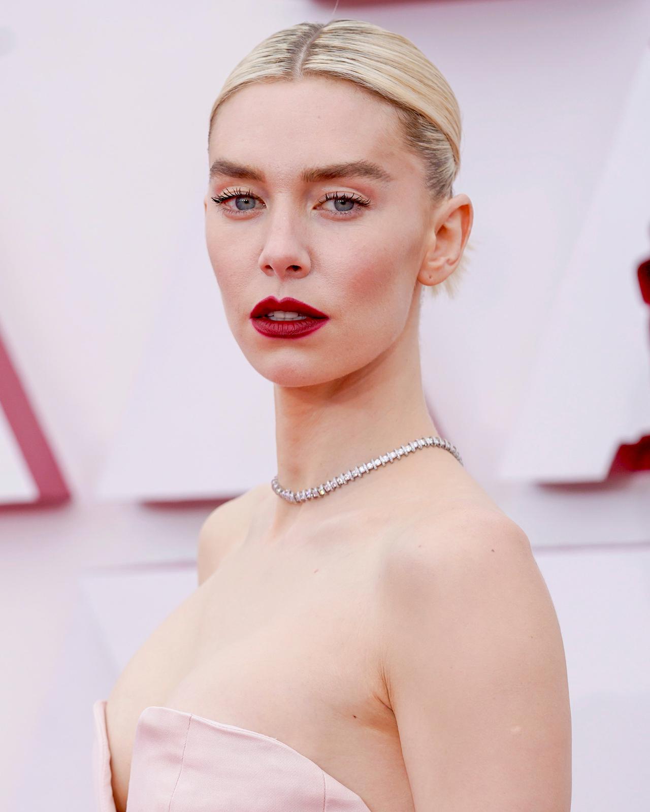 Netflix映画『私というパズル』でアカデミー賞主演女優賞にノミネートされた俳優のヴァネッサ・カービーは、鮮やかなバーガンディーレッドのリップを主役にした引き算メイクをチョイス。目元は、あえてシアーなアイシャドウとマスカラのみでまとめ、頬はブロンザーでヘルシーな血色感をプラス。絶妙なリラックス感が漂うルックに仕上げている。