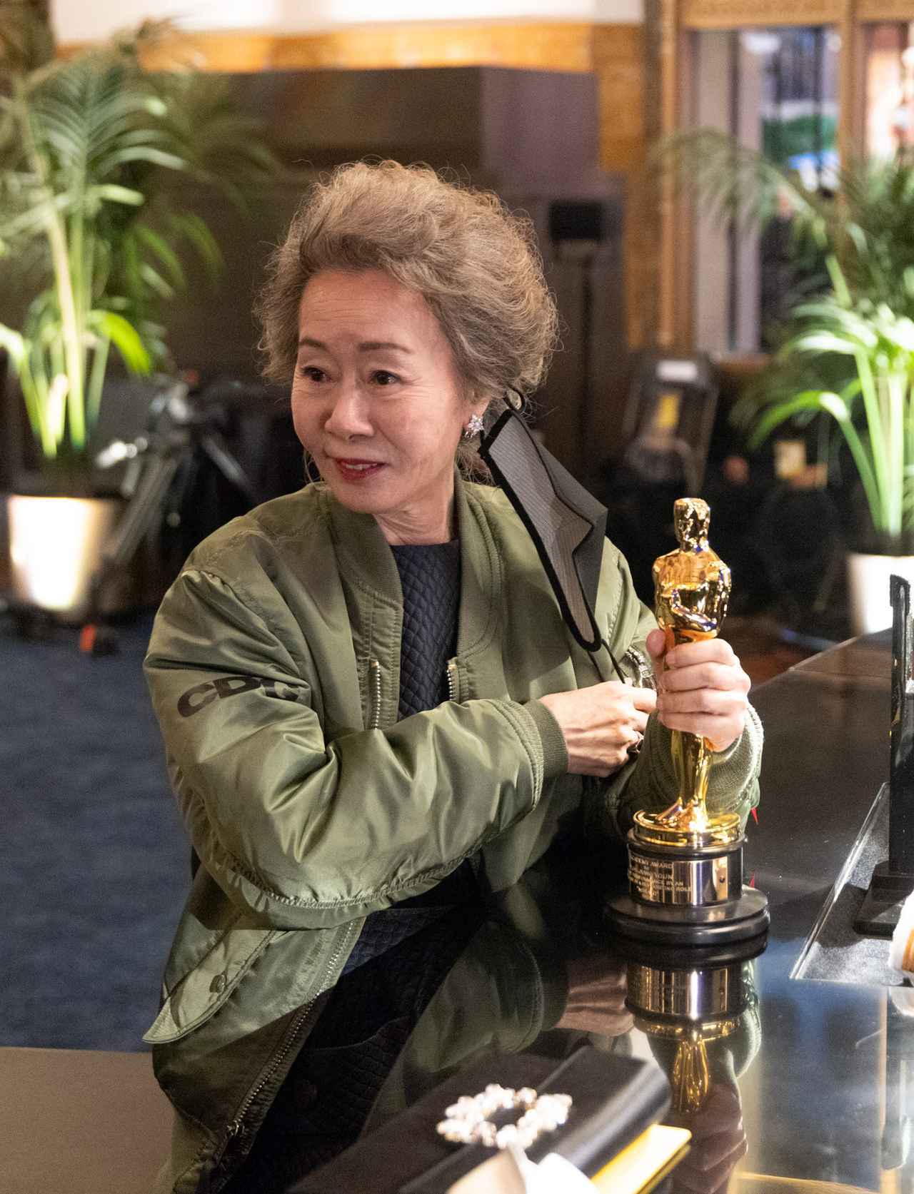 ドレスにMA-1を羽織ったちょいワイルドなユン・ヨジョンを激写。手には光輝くオスカー像が。