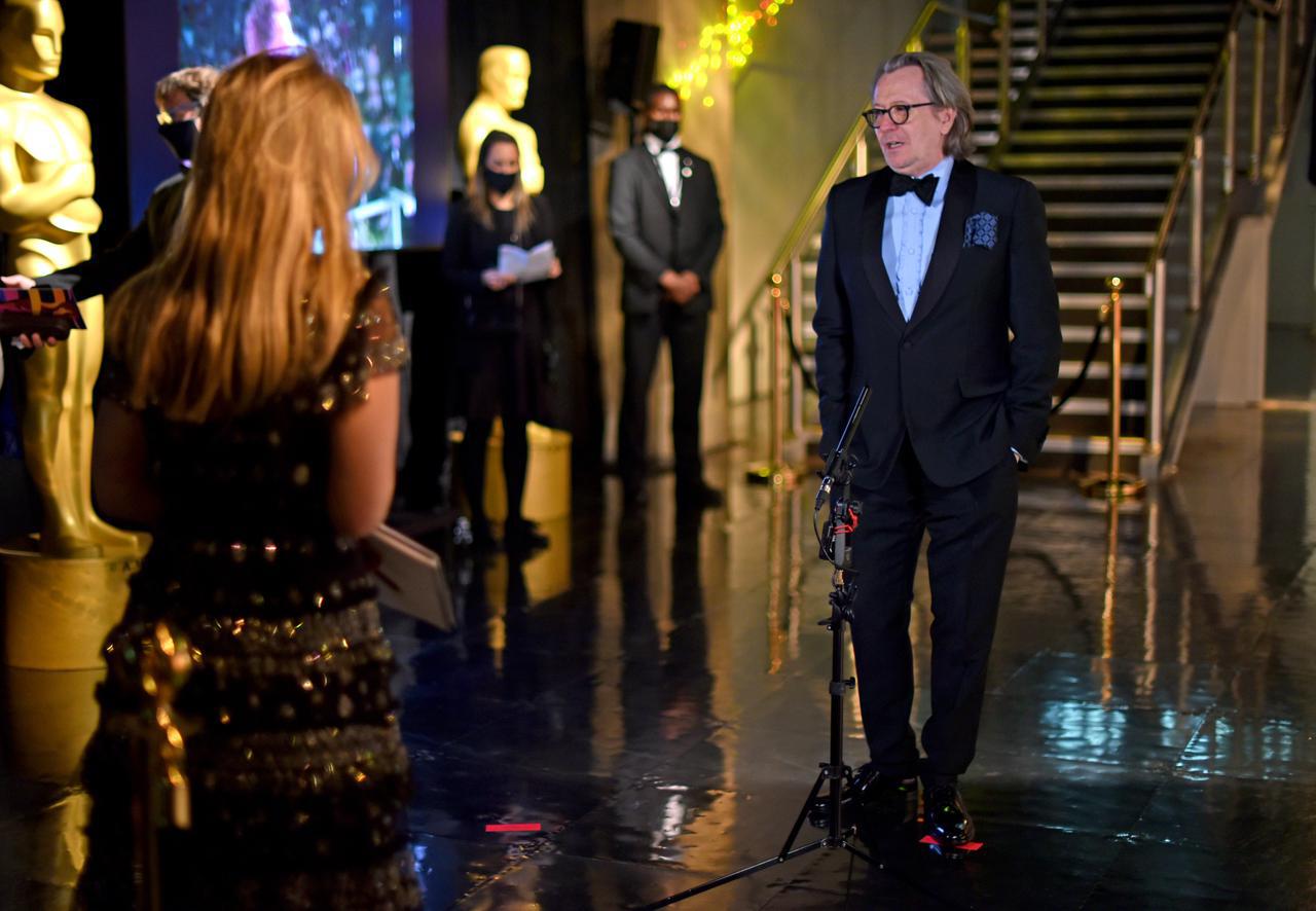 ゲイリー・オールドマンは、どうしても現地入りすることができないヨーロッパ滞在中の候補者やプレゼンターのために設置された英ロンドンの特設会場から授賞式に顔を出した。同様の中継地点がパリやプラハにも設けられたほか、例年の会場であるロサンゼルスのドルビー・シアターからも一部中継が行なわれた。
