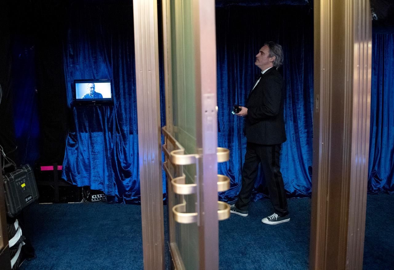 2020年に『ジョーカー』で主演男優賞を受賞したホアキン・フェニックスは、今年はプレゼンターとして参加。ステージの横で待機している姿も絵になる。タキシードにコンバースのスニーカーを合わせるところがホアキンらしい。